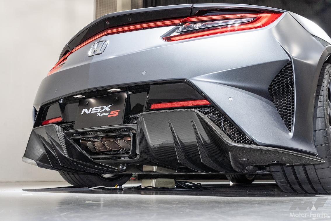 水上さん:タイプSとかのバッジの議論はなく、NSXを極めるってことは、19年モデルとか20年モデルを開発するなかでも同時並行で進めていました。これにタイプSっていうバッジが付くというのは、最後の話で総合的に考えた結果です。僕らとしてはそれがどういうモデルになるかというよりも、集大成としてちゃんとパフォーマンスデザインをやりたかった。ちょうど19年モデルのあとくらいには、これとほぼ似た擬装した外観でニュルブルクリンクを走っています。そのときは写真も撮られています(笑)。残念ながら、コロナ禍で最後のこの姿ではニュルには行けてなくて。だから鈴鹿サーキットでタイムが2秒短縮とかしか言えてないんです(笑)。