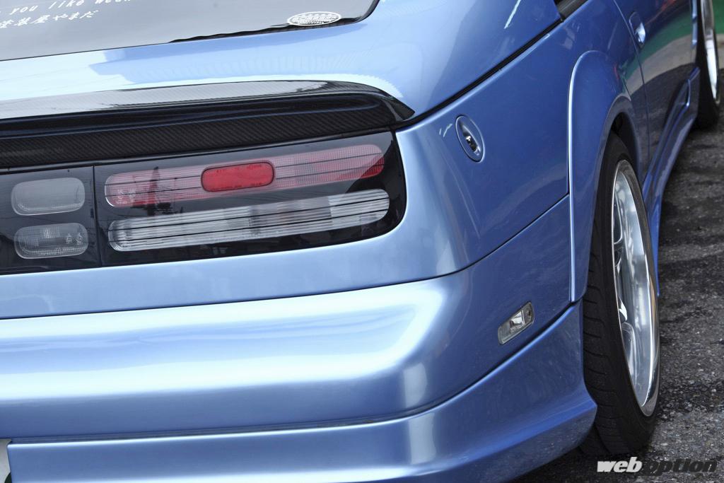 意外かもしれないが、“レヴォルフェS.A.”で面倒を見ているZ32には、ターボ仕様のみならずノンターボ仕様も存在する。割合的にはターボが8割:NAが2割とのことだが、ここで紹介する2by2モデルの方、アイスブルーメタリックでオールペンされたZ32は、まさに後者をベースに製作されたチューンドだ。