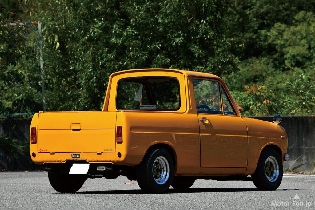オート3輪が主流だった戦後のマツダは軽3輪のK360に代わる主力商用車として1961年にB360を発売。バンとトラックのラインナップで1968年にモデルチェンジした時から車名がポーターになった。キャロルと同じ水冷4気筒エンジンだったが、1973年にシャンテと同じ2ストロークに変更。途中でキャブオーバーのポーターキャブが追加されると元祖トラックは人気が低下して76年に生産終了。