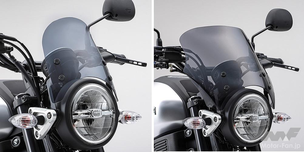 「空力というよりはドレスアップ効果が得られるアイテムでマシンの雰囲気が一変! ステーも含めてフィッティングもしっかりしているのがさすが純正アクセだ。もし走行風を抑えたいならバイザーキット(以下)もあるのでそちらもオススメ」【ケニー佐川】