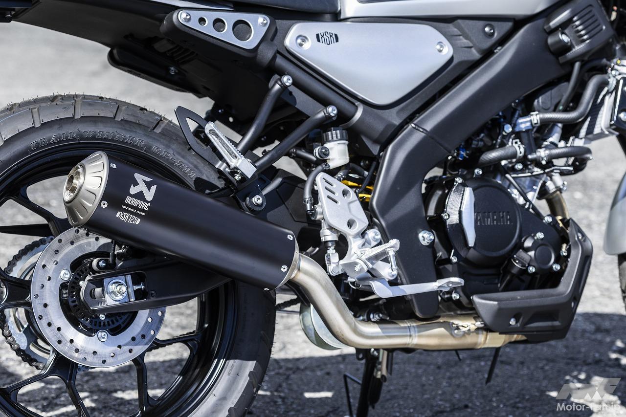 いずれも精度が高く、純正アクセサリーだからフィッティングは申し分なし。純正の魅力そのままに違和感なくカスタマイズが楽しめるのが魅力。また“XSR125”や“YAMAHA”ロゴが奢られているのも所有満足度を高めてくれるのだ。これらのパーツについて、モータージャーナリスト・ケニー佐川氏のコメントも一部踏まえながらチェックしていこう。