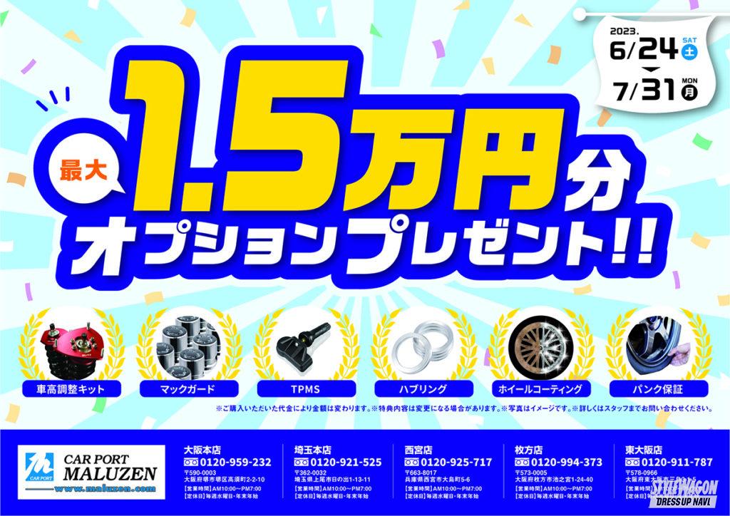 今回の決算セールは、カーポートマルゼン全店舗とオフィシャルサイトそれぞれで行われるが、内容がとにかく盛りだくさん。選りすぐりの商品を特別価格で販売する「在庫一掃セール」をはじめ、店頭でのタイヤ&ホイール購入で最大1万5000円分のオプションプレゼント、指定のアルミホイール購入でホイールデザインをリアルに再現したオリジナルクッションプレゼントなど特典多数。他にもデモカー&メーカーブースが並ぶ店頭イベントや、レーシングドライバー谷口信輝選手のトークショーなども予定されている。今年の夏は、カーポートマルゼンから目が離せません!