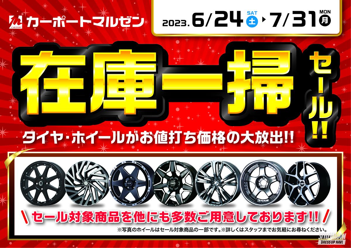 「タイ~ヤマルゼン、タイヤマルゼン」と歌いながら3人のスタッフがタイヤを転がして登場するユニークなTVCMが印象的な、タイヤ&ホイールの専門店「カーポートマルゼン」。お店に足を運べば、圧倒的な在庫量とお得なお値段に驚いた人も少なくないはず。そんなカーポートマルゼンが、6月24日(土)~7月31日(月)まで、年に一度の決算セールを開催。