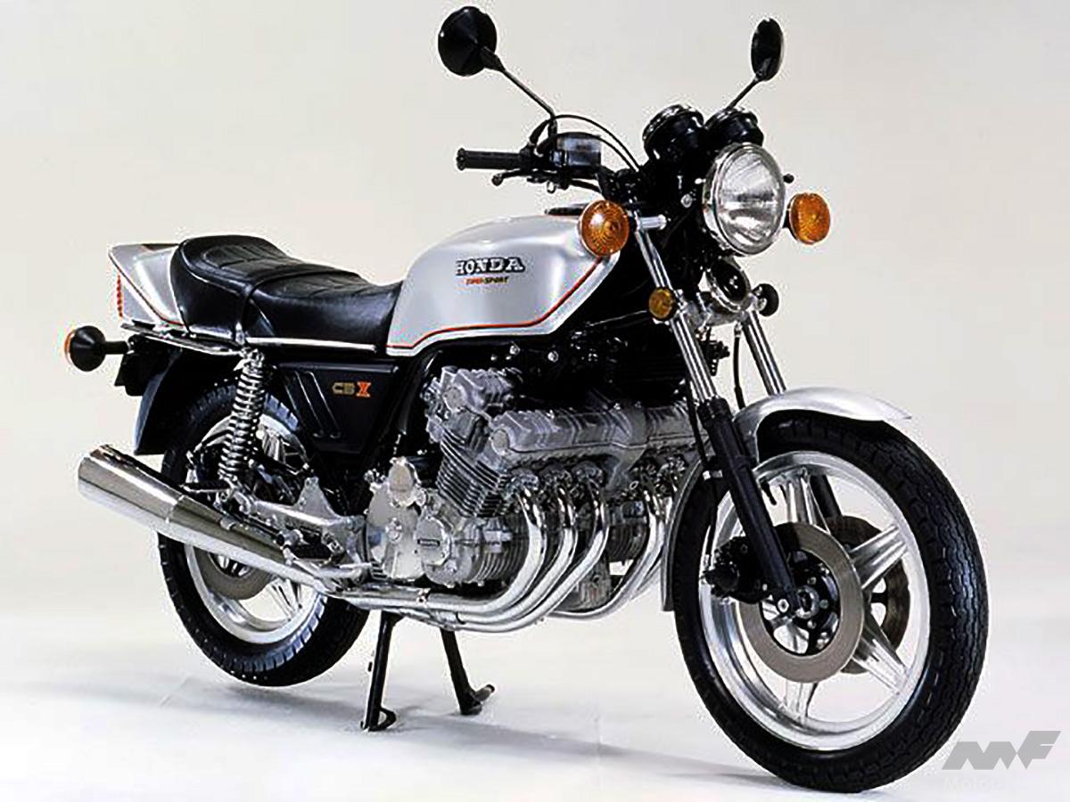 1979年(昭和54年)に登場したホンダCBX1000(正式なモデル名はCBX)は、空冷4ストローク並列6気筒DOHC 4バルブ1047ccエンジンを搭載した伝説のモデル。1978年(昭和53年)にリリースされた、水冷4ストローク並列6気筒DOHC 2バルブ1286ccエンジン搭載のカワサキZ1300と同様、“市販車では珍しい、ド迫力の6気筒エンジン車”として現在でもリスペクト。程度の良い車両は、超お宝モデルとして非常に高額な値段で取引されている。