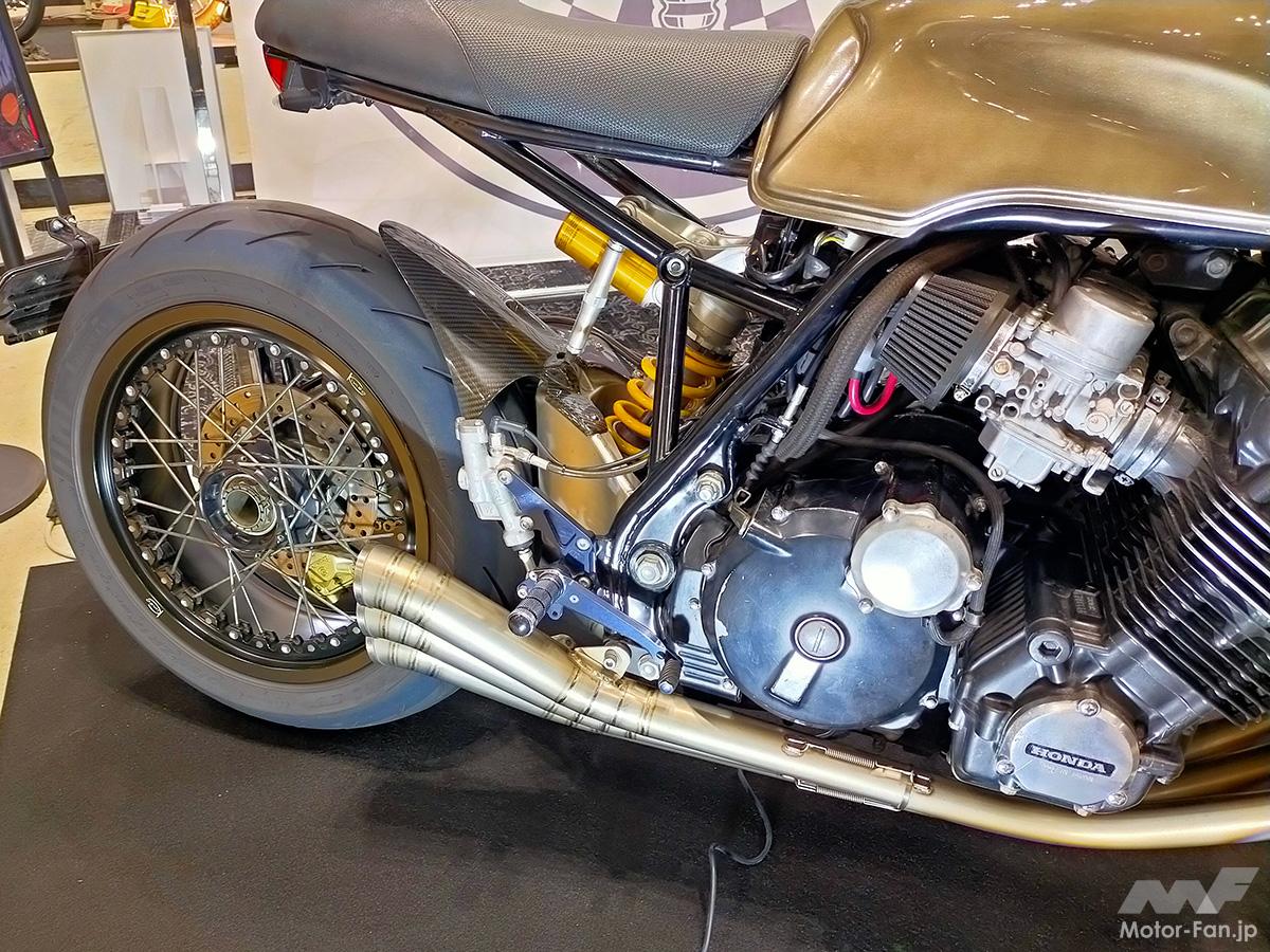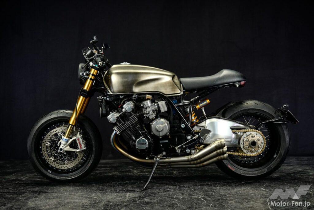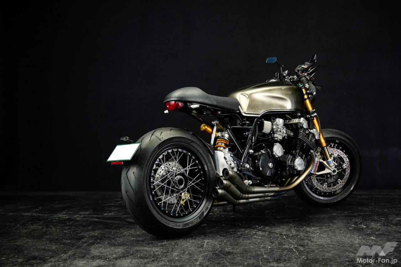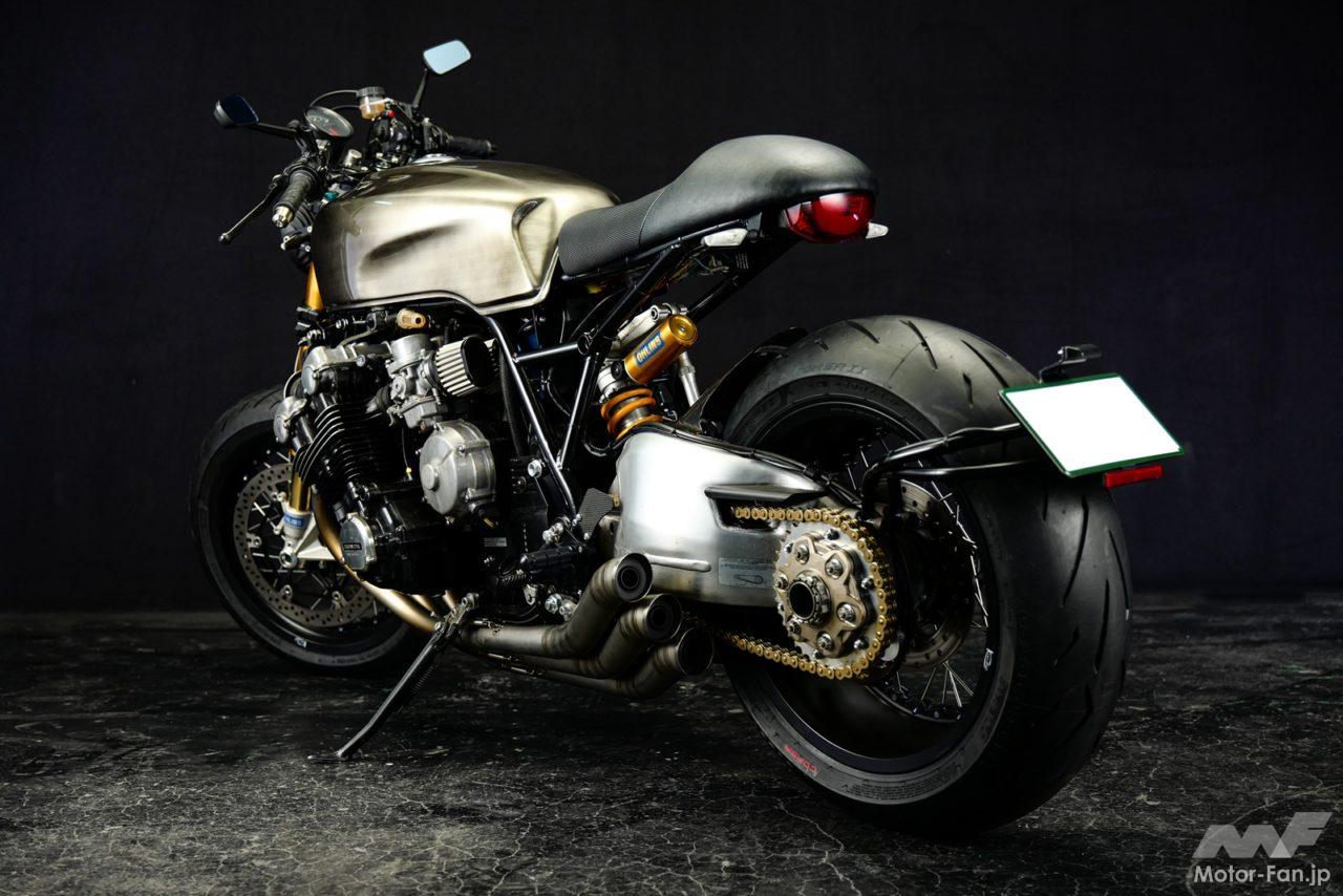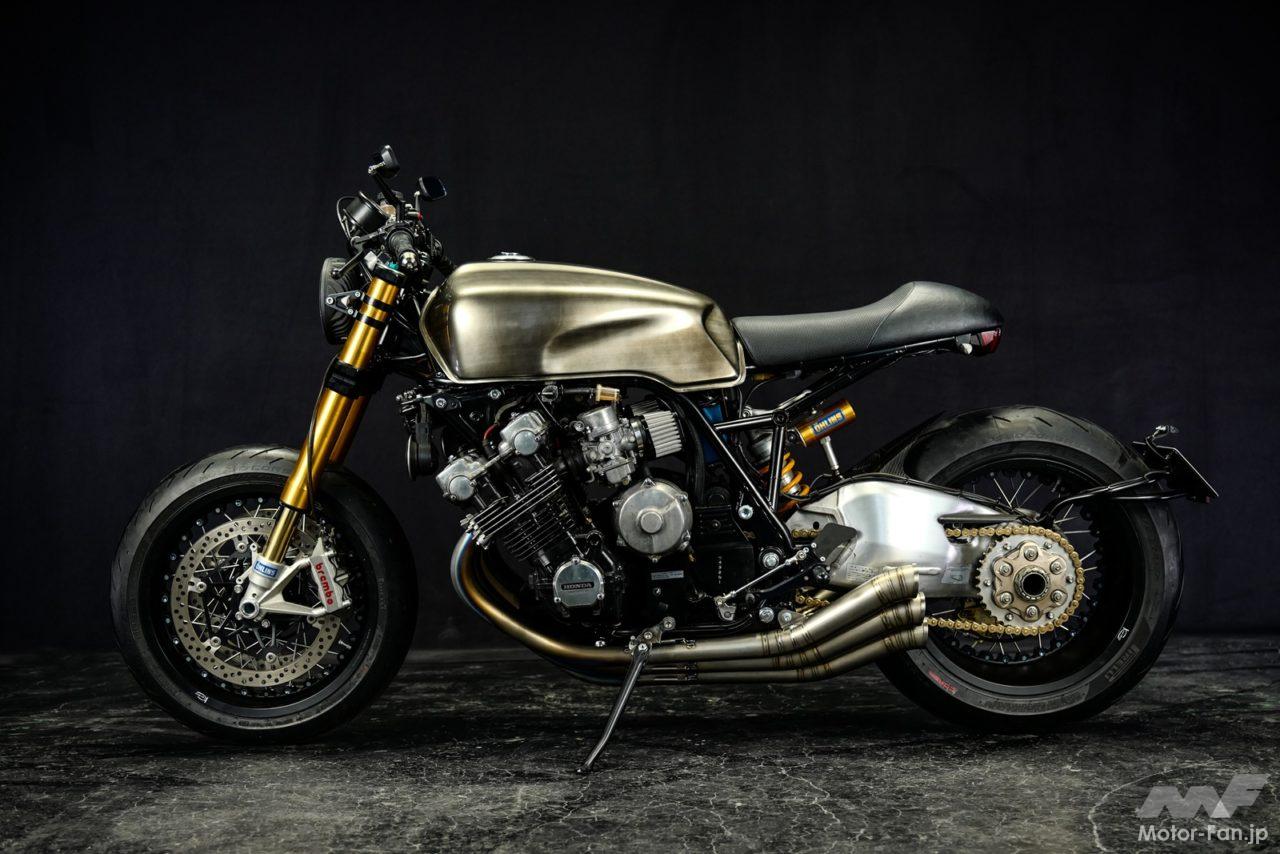 写真はホンダのCBXやCB-FからRC17Eエンジン搭載のCB750(RC42)まで、数多くのカスタムやメンテナンスを実施するショップ「Remotion」が製作した、ホンダCBX1000ベースのカフェレーサーカスタム。フレームは後ろ半分を作り直し、車体はゼロベースで作成。様々な要素を取り入れながら、現在でも通用するデザインとポテンシャルに仕上げている。