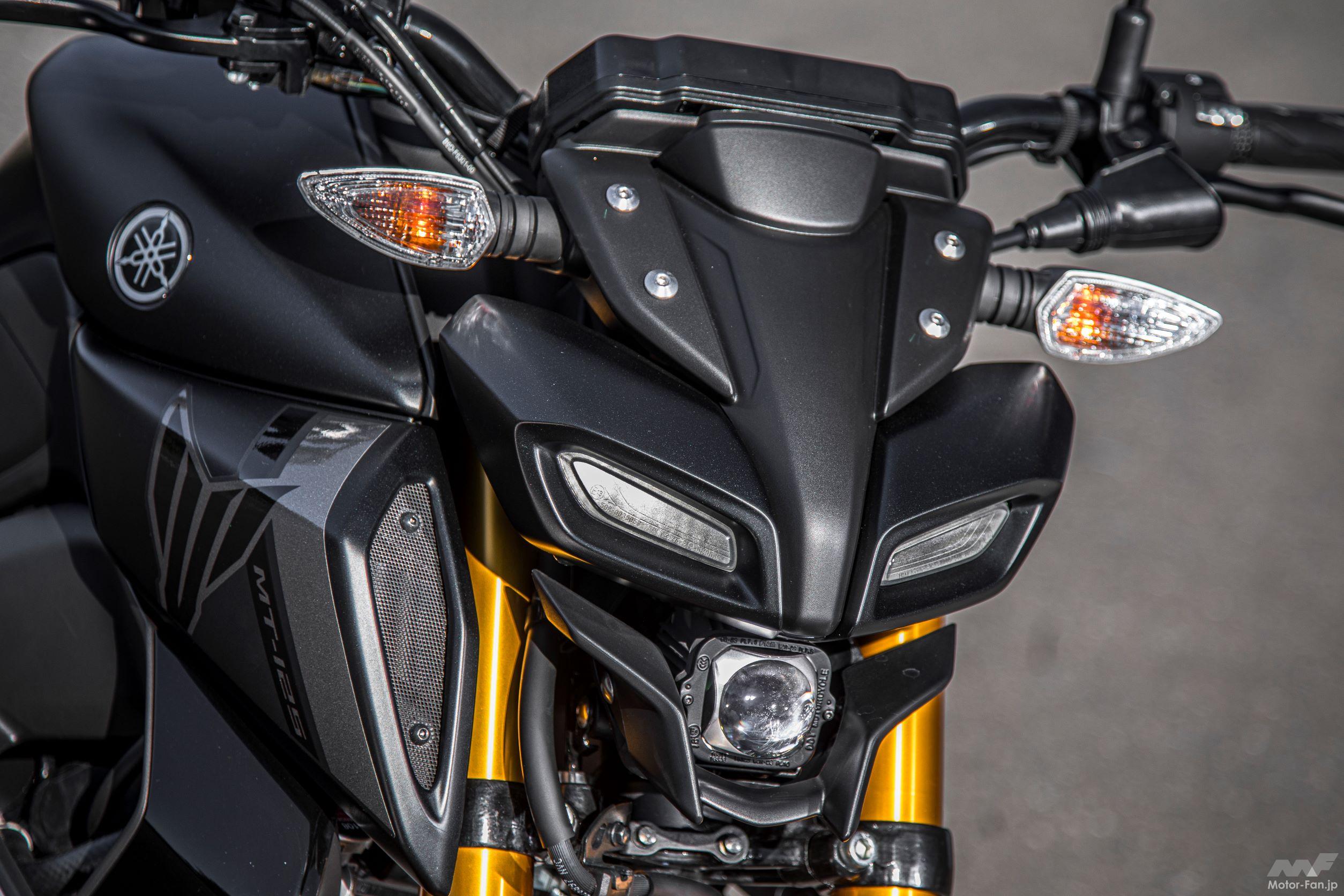 このMT-125、真横から撮影したライディングポジションの画像を見てもらえば分かるように、ライダーの乗車位置が前寄りとなっている。共通プラットフォームのYZF-R125よりも上半身がアップライトになる分、積極的に前輪荷重を稼ぐためにこのような着座位置にしたのだろう。街乗りではやや後退気味に思えたステップ位置も、ワインディングロードに入るとピタリと決まり、思わずヘルメットの中でニヤリとする。また、そうしたハイペースのライディングにおいて、ニーグリップエリアのフィット感も素晴らしく、攻めるほどに開発者の狙いが伝わってくるのだ。