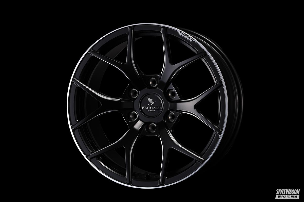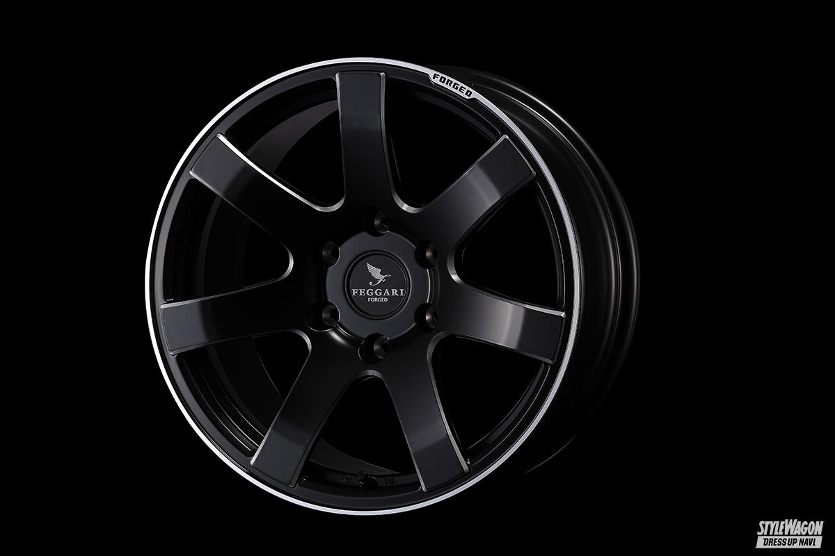 フェガーリ フォージドのホイールは、その名の通り鍛造モデル。1万2000トンのプレスで鍛えられ、軽量高剛性のハイスペックを獲得した。6交点ラフメッシュのM12と、王道7スポークのS7の2モデルを揃える。どちらも、中央付近が大きく落ち込んだコンケイブフェイスで、その迫力はご覧の通り。サイズは25㎜のオーバーフェンダーが必要な18インチ9J+25とアグレッシブ。圧倒的なインパクトと鍛造のハイステイタスをアピールできる。もちろん、フェガーリでオーバーフェンダーを設定済みだ。フィニッシュは全4色。職人による研磨目が鮮やかなブラッシュ系2色。カタマリ感のあるマットブラックに、リムエンドとスポークサイドをマシニングで際立たせたブラック/サイドマシニング。全面バフ仕上げでメタル感煌めくミラーフィニッシュを設定する。