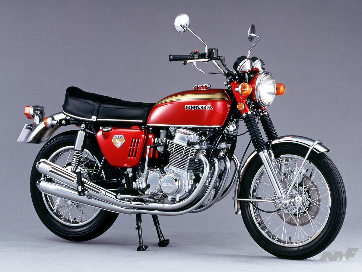 量産初の並列4気筒車となった、ホンダCB750フォアを知る。|旧車探訪記①-1|Motor-Fan Bikes[モータファンバイクス]第二次大戦後の1948年に創業したにも関わらず、1960年代初頭に2輪車生産台数世界一の称号を獲得し、1966年には世界グランプリ全クラス制覇を成し遂げたホンダ。そんな同社が、欧米の古豪メーカーに真っ向勝負を挑んだ初の大排気量車が、1968年の東京モーターショーで公開され、翌1969年から発売が始まったCB750フォアである。量産初の並列4気筒エンジンを導入したこのモデルの大成功で、ホンダは名実共に世界ナンバー1メーカーの地位を確立したのだ。REPORT●中村友彦(NAKAMURA Tomohiko)PHOTO●富樫秀明(TOGASHI Hideaki)