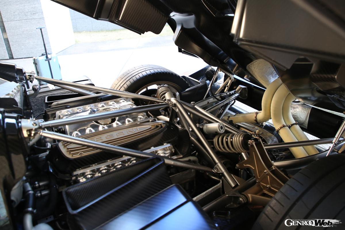 ミッドに搭載されるのは、メルセデスAMGがパガーニのために特別に製造した6.0リッターV12ツインターボエンジン。最高出力864PS、最大トルク1100Nmを発揮する。トランスミッションは、複雑なDCTは採用せず、極めてピュアでプリミティブな操作が楽しめるXトラック製7速MTを採用。駆動方式はRWDとなっている。