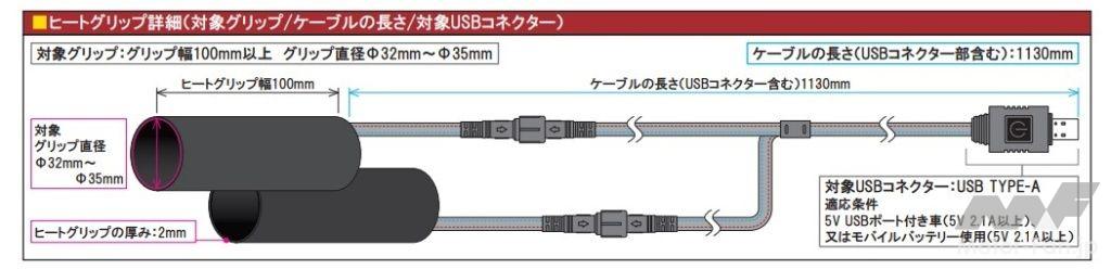 ※本製品を使用する場合、給電用USB TYPE-Aポート、又はモバイルバッテリーが必要になります。USBポートの場合、USBポート側が5V 2.1Aを安定して出力できない場合、発熱量が不足し、本来の性能を発揮できません。社外品等のUSB2ポートタイプに他の機器と同時装着する際も発熱量不足の原因に繋がります。
