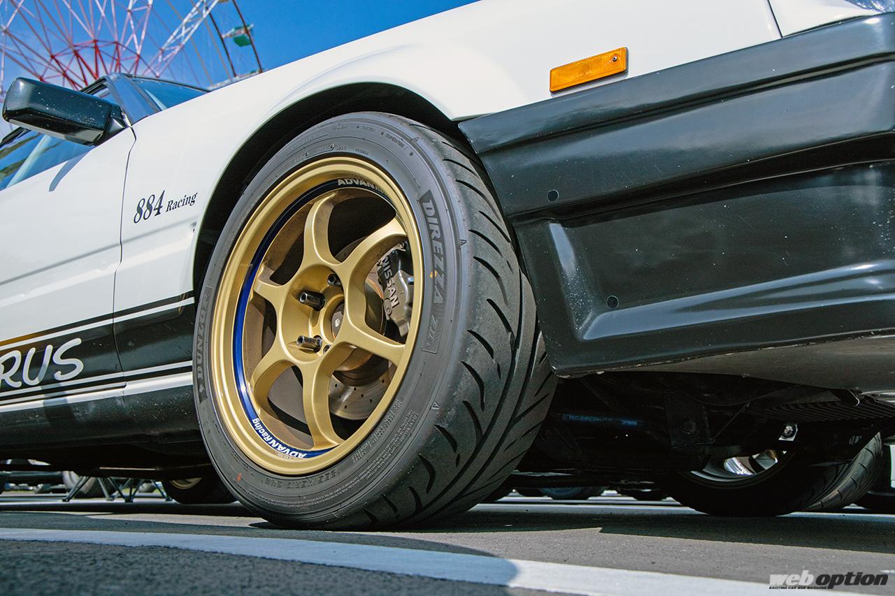 足回りは近代化チューンを敢行。フロントはサスメンバーからアーム類、車高調まで全てS14シルビア用を移植。リヤはBNR32用サスメンバーをゴッソリ移植してマルチリンク化し、トラクション性能を高めている。自然な前後オーバーフェンダーはオーナーお気に入りのポイントだ。