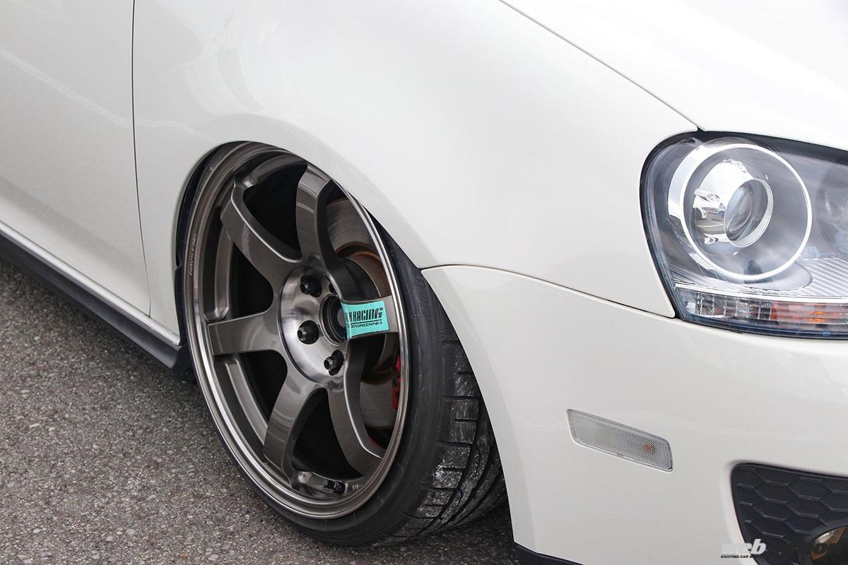 丸みを帯びたボディラインが特徴のホットバージョンGTIで、地を這うようなスタンス系カスタムを決めたのがこのゴルフ。“レイズファンミーティング2023”に集ったマシンの中でも群を抜くドシャコタンぶりに思わず足を止め、そのカスタム内容を伺うことにした。