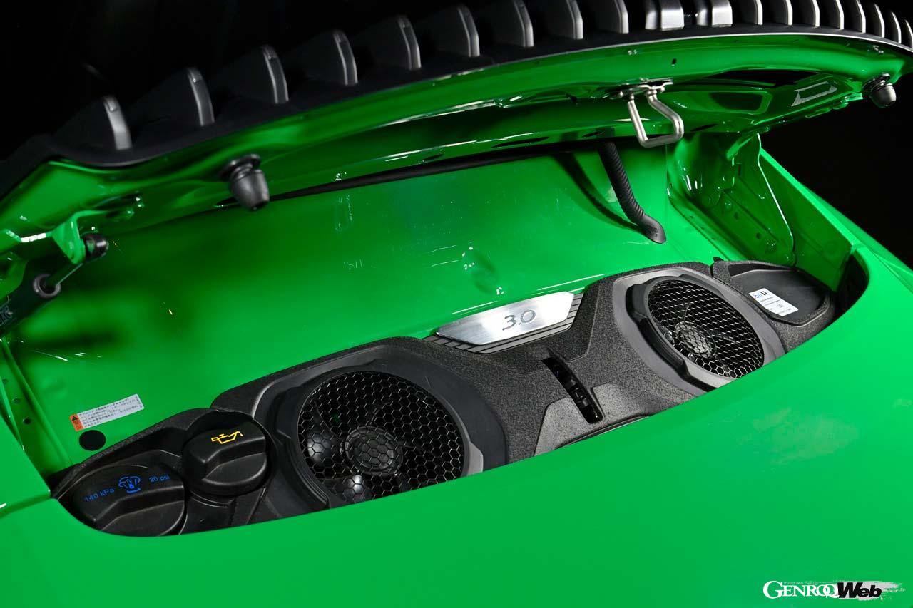 カレラTはスポーツシャシー&LSDに加えてリヤガラスの薄板化やリヤシートの撤去(無償オプションで装着も可能)など軽量化も施すことで走りのフィーリングを高めたグレードだ。搭載エンジンはカレラと同じ3.0リッターツインターボのフラット6、出力も同じ385PS。今回の中では最も低いが、車検証記載値で1470kgの車重に表さずとも軽量化の効果はしっかり走りに現れていて、カレラより確実にタイトでダイレクトなドライブフィールが味わえる。
