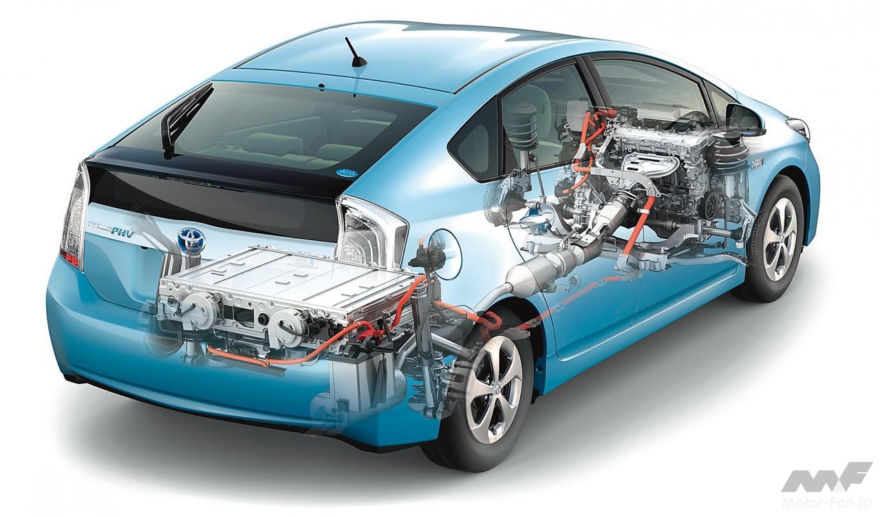 プリウスPHV:80kg分のリチウムイオン電池パックをプリウスにアドオンした構成
