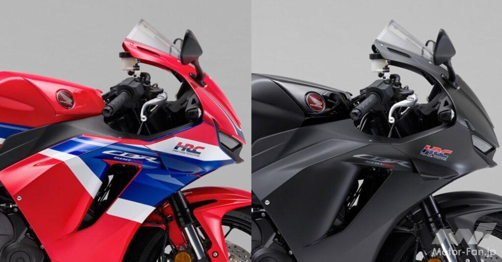 CBR600RRは、シンプルでさまざまなシチュエーションにマッチするカラーリングとして「マットバリスティックブラックメタリック」を新たに設定したほか、よりレーシングイメージあふれるグラフィックデザインと配色に変更した「グランプリレッド」の全2色設定としている。