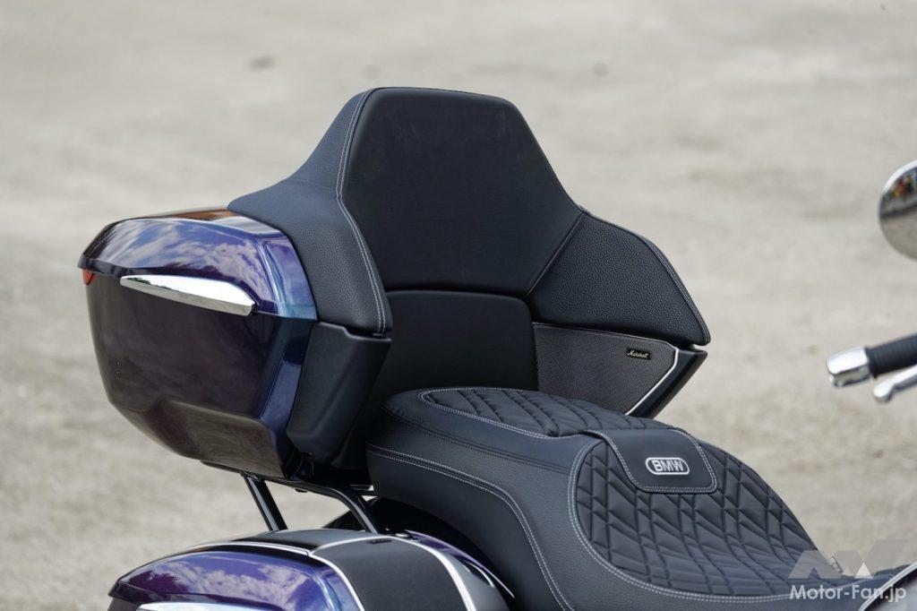 大陸横断という長旅を、パッセンジャーとともに体験できる。リヤシートは分厚く腰のあるクッションだけでなく、バックレストやアームレスト、さらにマーシャル製のスピーカーも備える。