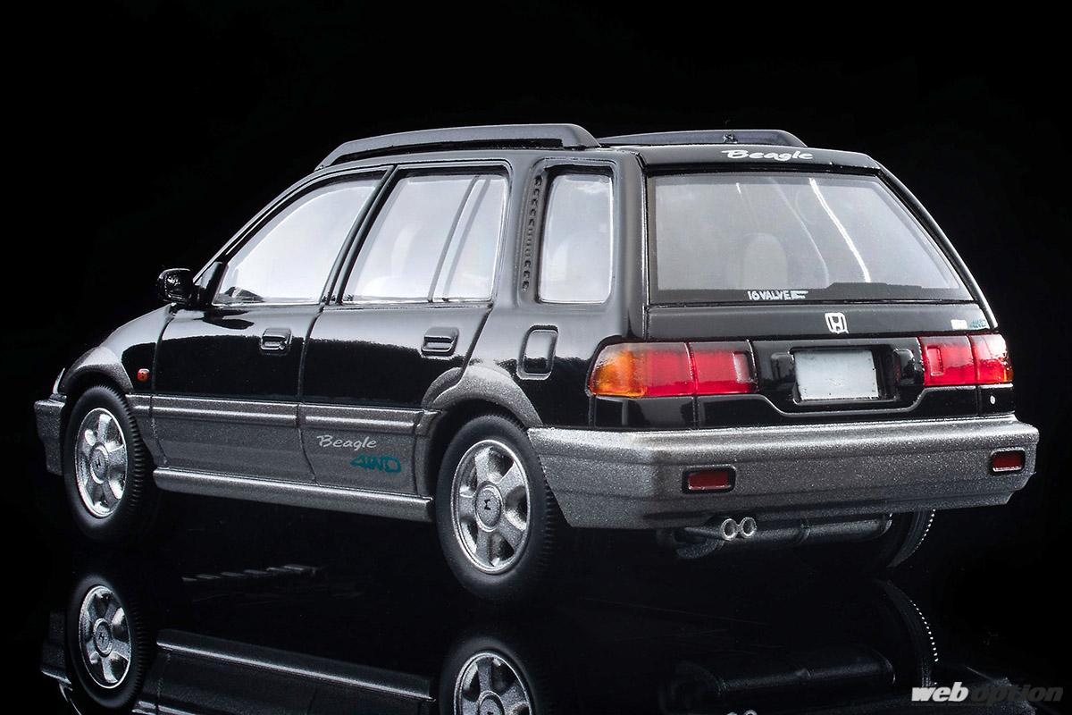 トミーテックが展開している、ハイクオリティな大人のミニカー「トミカリミテッドヴィンテージNEO」シリーズに、「シビック シャトル56i(ベージュ)87年式」と「シビックシャトル ビーグル(黒/グレー)94年式」が設定された。