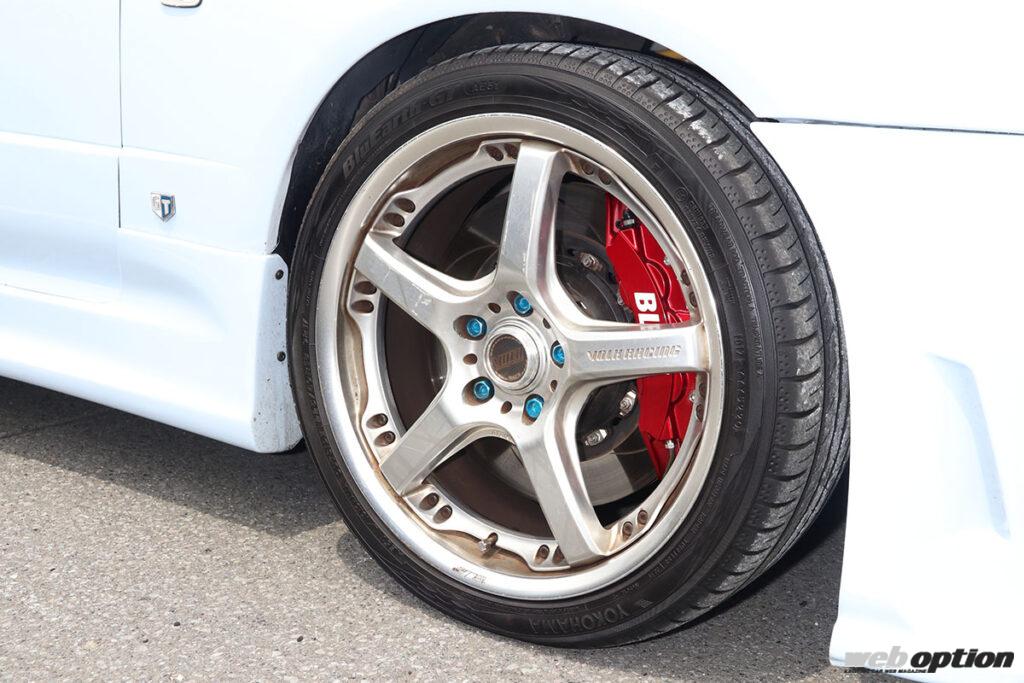 それは、現行のラインナップには存在しない鍛造2ピース5スポークデザインのGTSだ。装着サイズはフロント8.0J×18、リヤ9.0J×18。20000年代中盤にリリースされたモデルで、長年に渡り愛車の足元を支えてきたものだという。