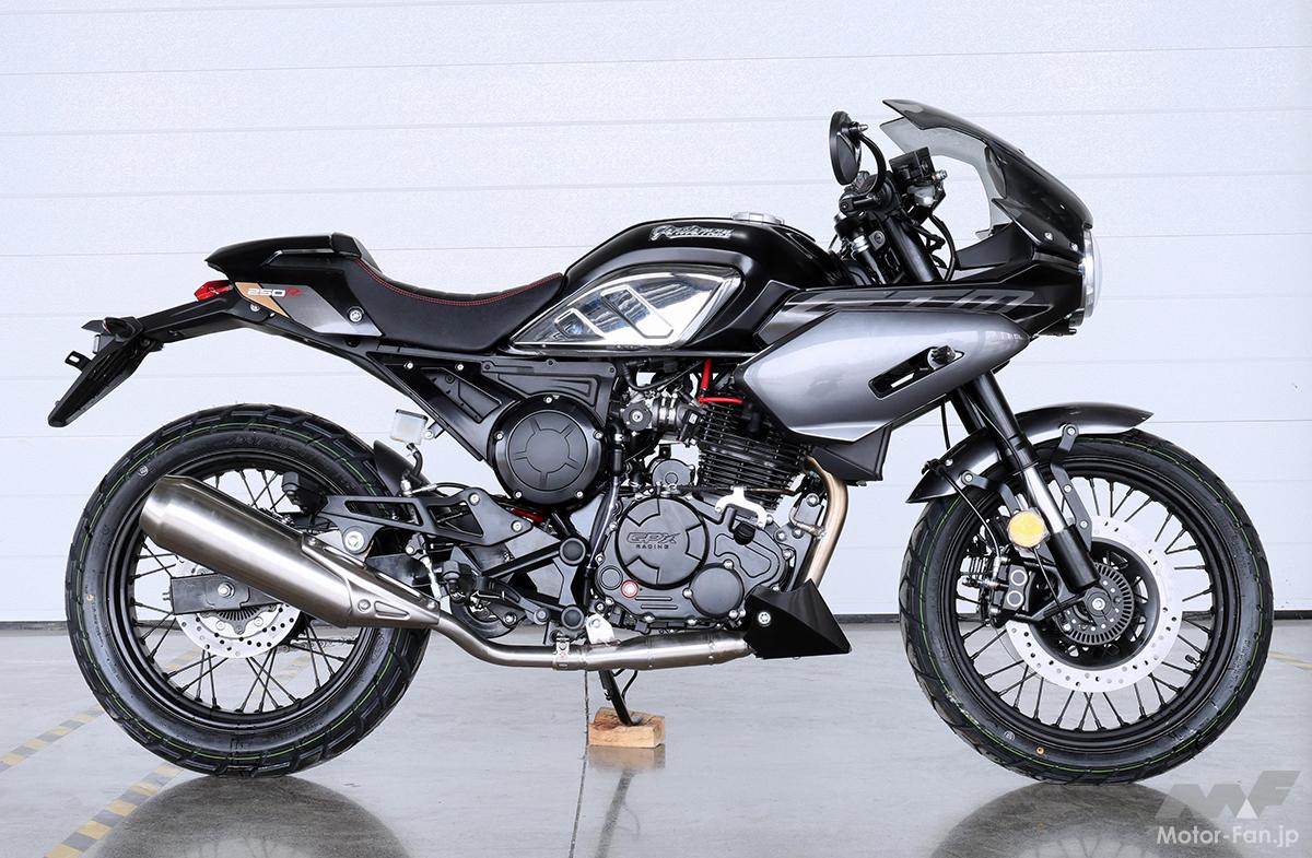 同車の後継モデルとなる写真の「GTM250R」は、同型の空冷4ストローク単気筒SOHC 2バルブながら、排気量を197ccから249.9ccに拡大。吸気系はキャブレターからインジェクションに変更された。