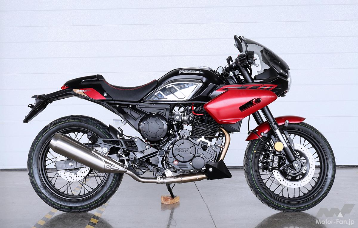 800mmのシート高はそのままに、車輌重量をGentlemanRacer200の160kgから、148kgへと軽量化。写真のカラーはレッド。