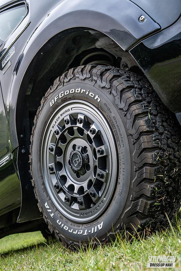 SPEC■ホイール:TSW・ブラックライノ(17×8.0J) ■タイヤ:BFグッドリッチ:T/A KO2(245/65) ■エクステリア:フロントスキッドバー&フェンダー=ジャオス、グリル=チッピング塗装、ヘッドライト&テールレンズ=スモーク塗装、ルーフキャリア&BUCKアーマー=オートフラッグス、リアラダー=マチヤマ4×4、ヒッチキャリア=カート ■インテリア:シートカバー=カーショップコネクト、フロアマット=FJクラフト、ベッドキット=三菱西尾張D:BED ■足まわり:2インチブロックリフトアップ
