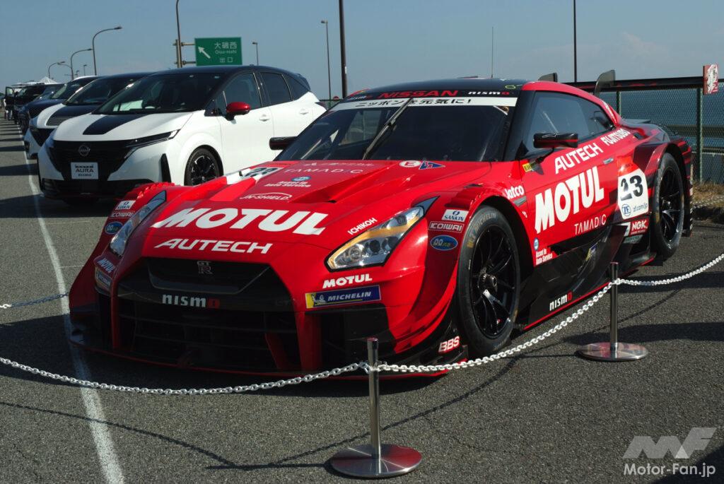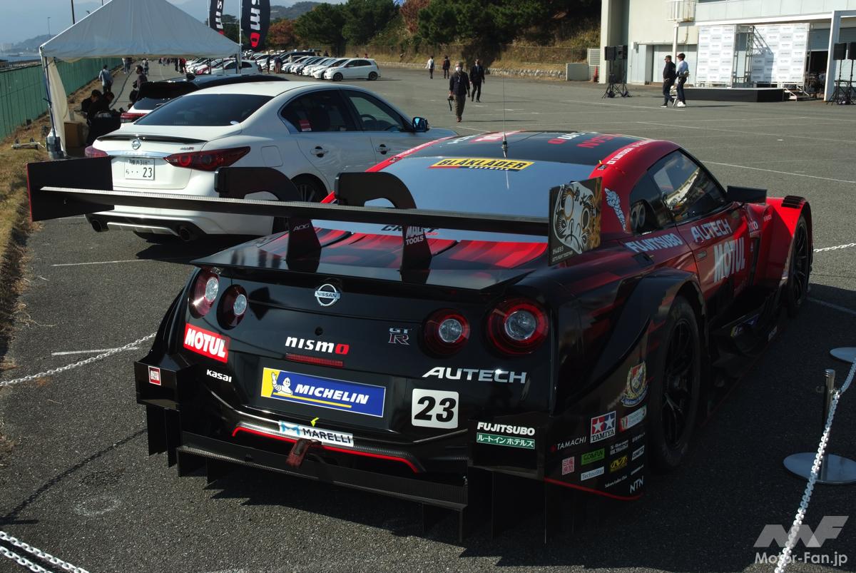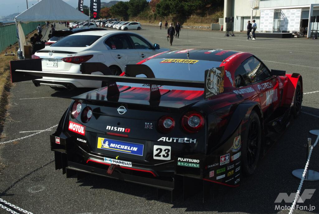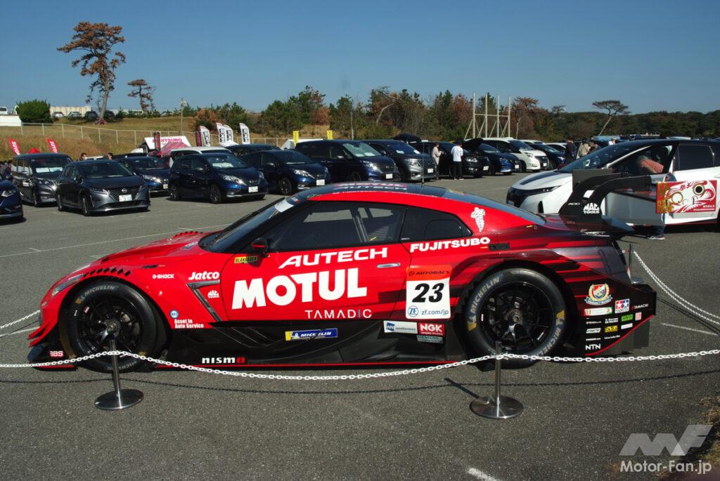 NISMOチューニングカーに加え、スーパーGTで活躍したGT500マシンを展示。本物のレーシングカーをすぐ近くで見ることができる貴重な機会となった。GT500マシンはNo.23 MOTUL AUTECH GT-Rだ。