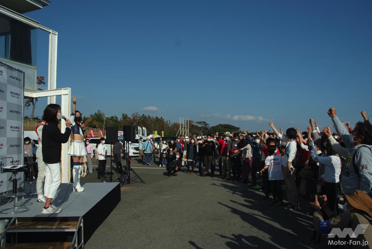 トークショーに続き恒例のジャンケン大会が催され、平手選手と美すずさんが参加者とジャンケン勝負を繰り広げ、幸運にも勝者となった参加者は12月4日にフジスピードウェイで開催される「NISMO FESTIVAL at FUJI SPEEDWAY 2022」の入場券をゲットした。