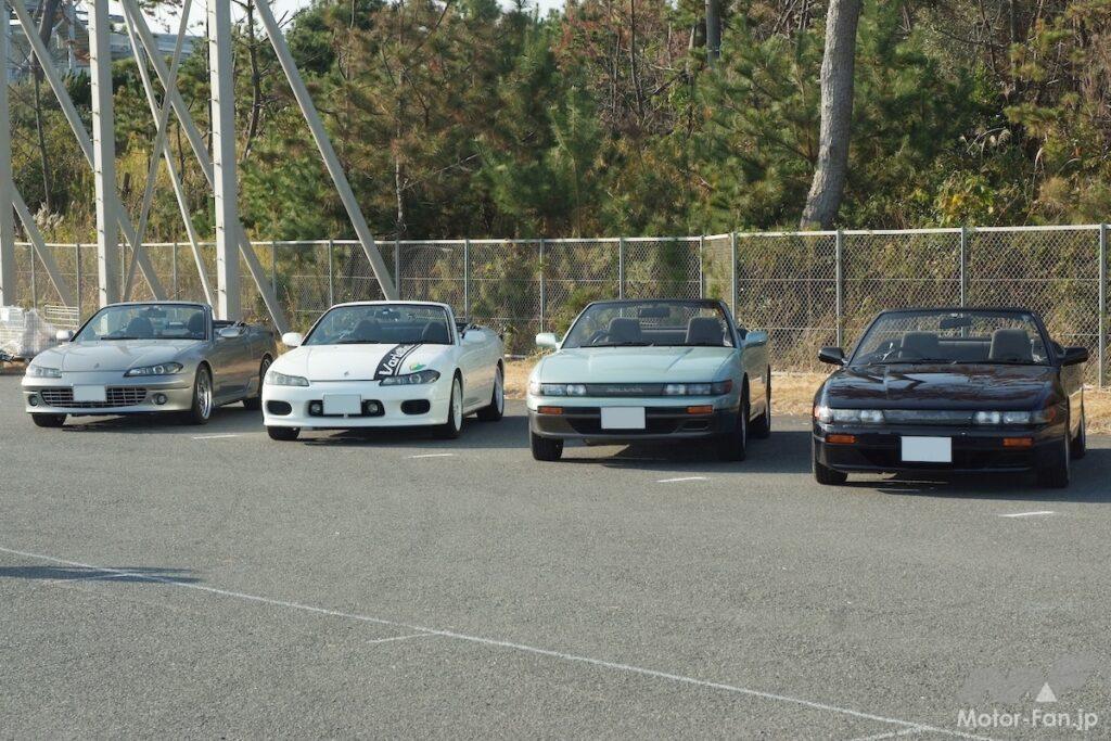 シルビアのオープンカーもなかなかお目にかかれないレア車。S13型のコンバーチブルとS15型のヴァリエッタが並ぶシーンなど滅多に見られるものではない。特に幌車であるS13型など、幌のコンディションなどを考えれば維持していくのにはさぞ神経を使うことだろう。