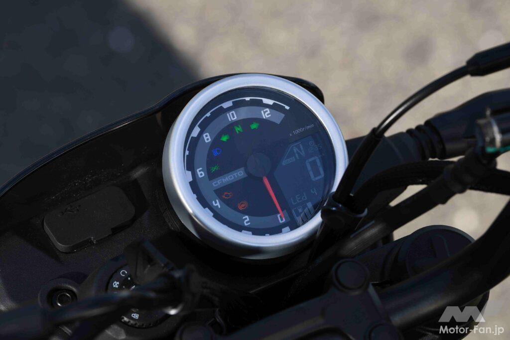 そしてそういった印象には、各部の作りの良さも貢献している。これは兄弟車として開発されたXO-1にも通じる話で、エンジンが従順で扱いやすく、車体の包容力が十二分で、ブレーキ/クラッチのタッチや前後サスの動きが自然なこのバイクに乗っていると、CFMOTOの技術力がすでに日本のメーカーと同等に達していることが認識できるのだ。その事実をどう捉えるかは人それぞれだが、125cc・前後12インチ車の世界に新しい選択肢が加わったことは、多くのライダーにとって歓迎するべきことだと思う。