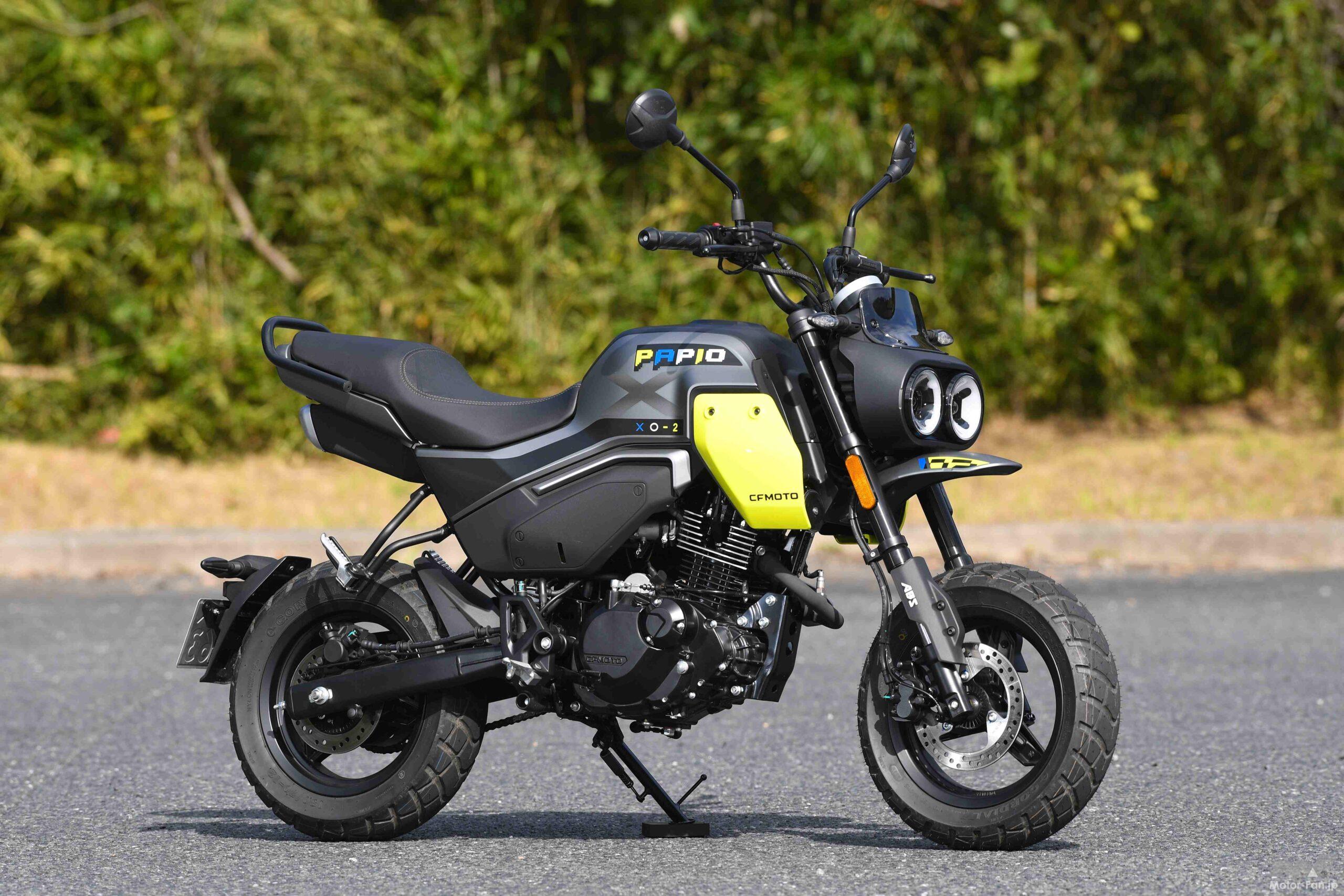 CFMOTOのパピオXO-2と対面して、僕の頭にふと浮かんだのは“レジャーバイク”という言葉だった。その一番の理由は愛嬌抜群のルックスだが、一般的なオンロードバイクと比べるとタイヤが小さいことも、そう感じた一因だ。もっとも1970~1980年代に大ブームとなったレジャーバイクが、実用性をあまり考慮していなかったのとは異なり、それらの後継車と言うべき近年の125cc・前後12インチ車は、コレ1台ですべてOK?と言いたくなるほどの性能を備えている。もちろん、XO-2の実用性も十二分だった。