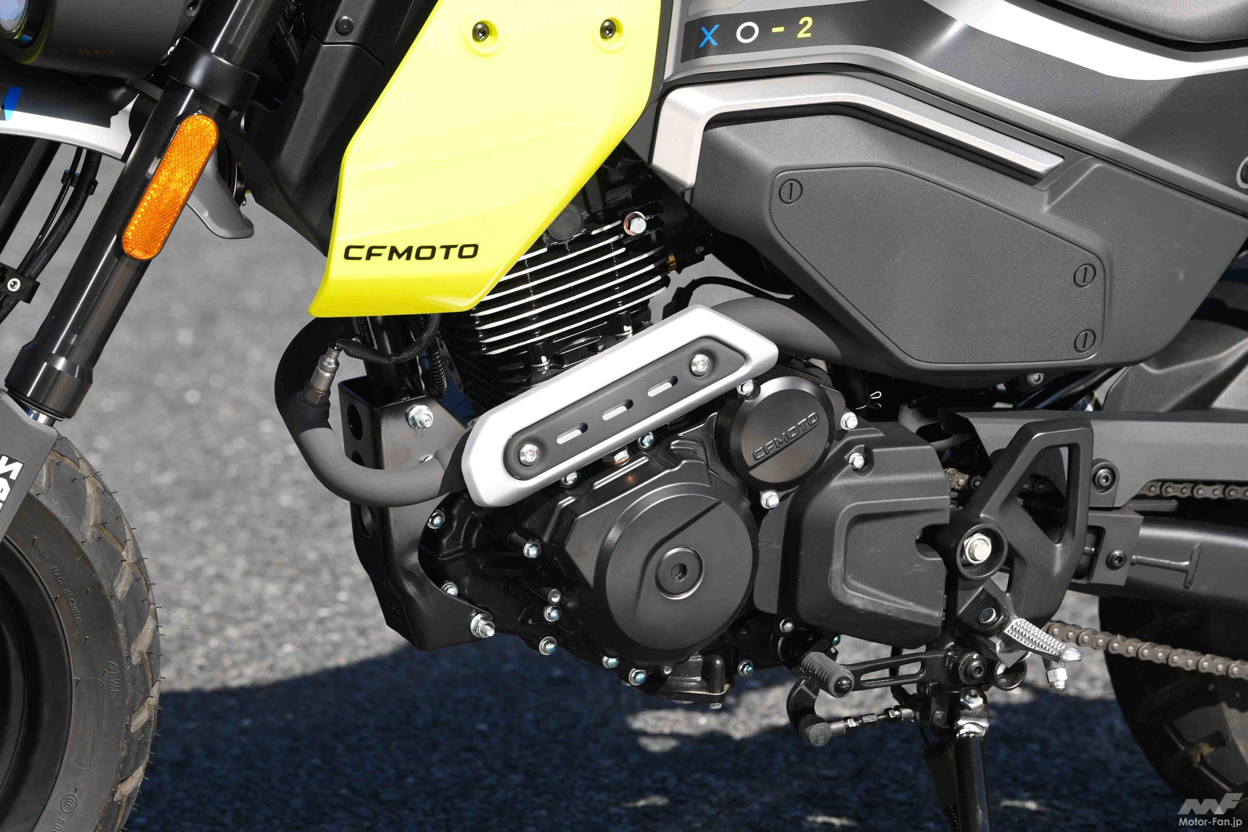 そしてそういった印象には、各部の作りの良さも貢献している。これは兄弟車として開発されたXO-1にも通じる話で、エンジンが従順で扱いやすく、車体の包容力が十二分で、ブレーキ/クラッチのタッチや前後サスの動きが自然なこのバイクに乗っていると、CFMOTOの技術力がすでに日本のメーカーと同等に達していることが認識できるのだ。その事実をどう捉えるかは人それぞれだが、125cc・前後12インチ車の世界に新しい選択肢が加わったことは、多くのライダーにとって歓迎するべきことだと思う。