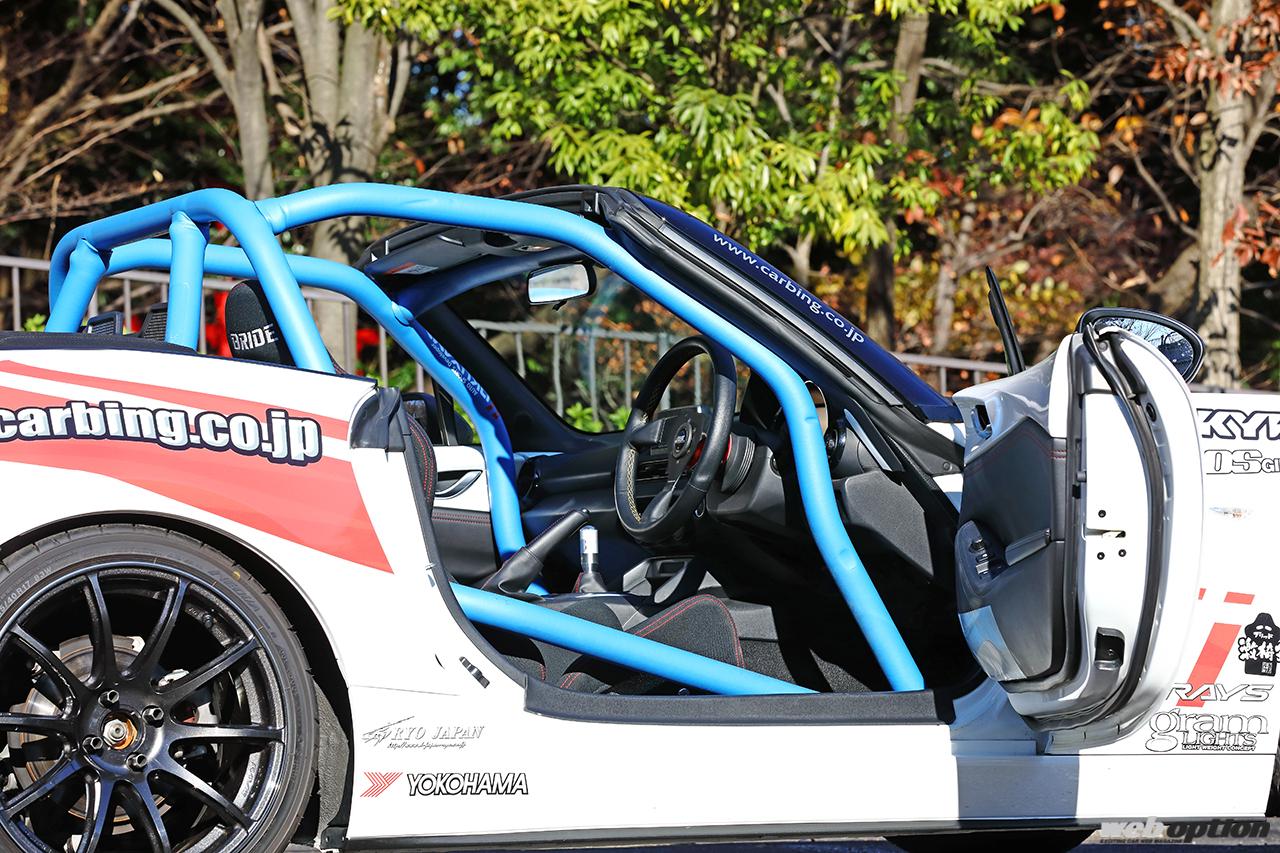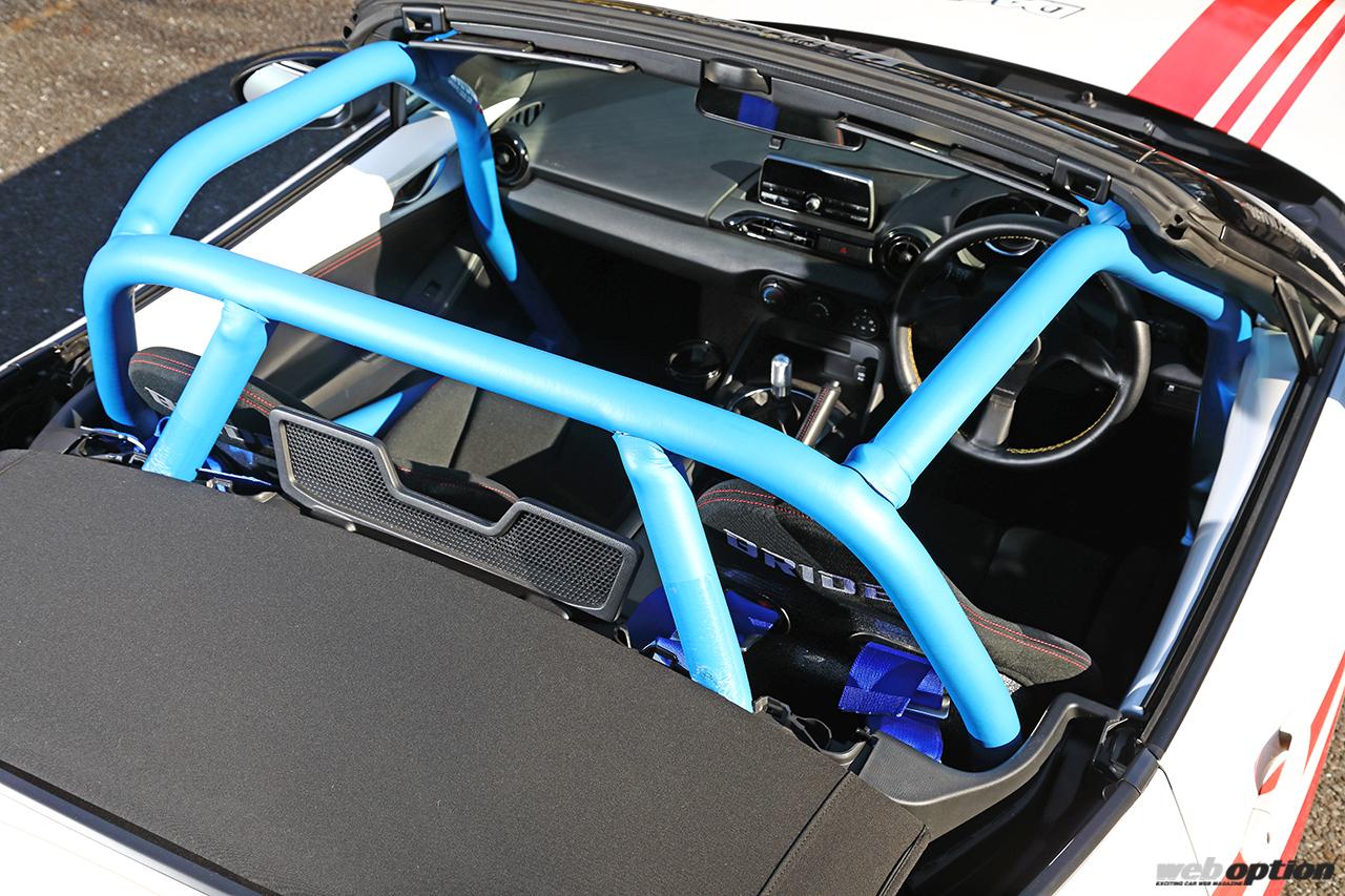 ちなみにデモカーにも装着される8点式のダッシュボード逃げタイプなら、キャビンを取り囲むような形状となっているため、万が一のクラッシュ時にも安心だ。もちろん、幌の開閉もノーマルと同じように行なえる。