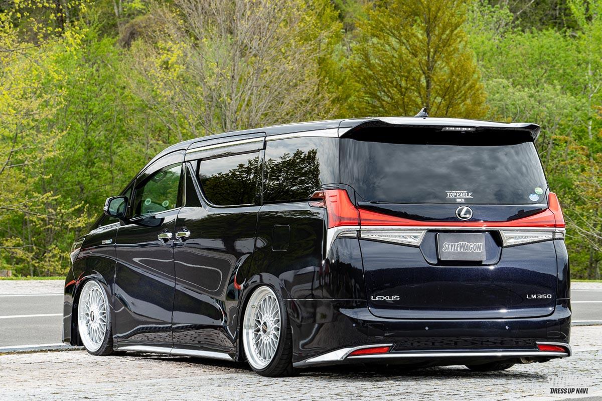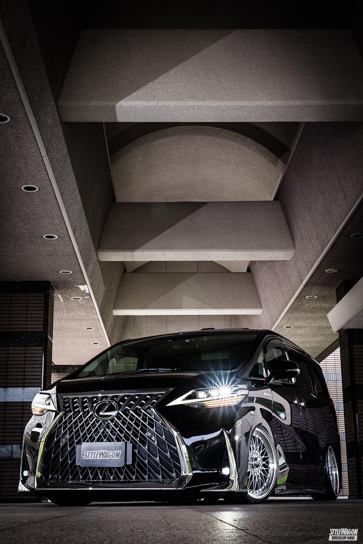 外装 【カッコ良いカスタム総点検_Vol.5】30系アルファード&ヴェルファイアのレクサスLM化が急増!!【写真・9枚目】 トヨタ・30アルファード トヨタ・30アルファード OWNER 小池隆司さん (北海道) 前後20インチのメッシュスポークホイールは王道かつ普遍的なBBSスーパーRSをチョイス。圧倒的なプレミアム感が得られる。 LEXUSブランドのアイデンティティである糸巻きをモチーフにしたスピンドルグリルの存在感たるや唯一無二。 LMフェイスを印象付ける最終兵器は最低地上高を切り詰める足まわりに他ならない。エアサスには名門エアレックスをチューニングして組み込む。 サイドステップは「エグゼクティブラウンジ」グレードの純正品だがLM仕様のメッキフェイスと完璧な整合性がとれている この画像の記事を読む