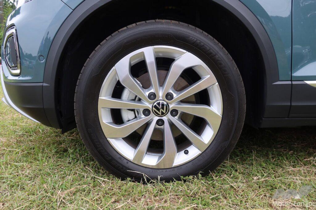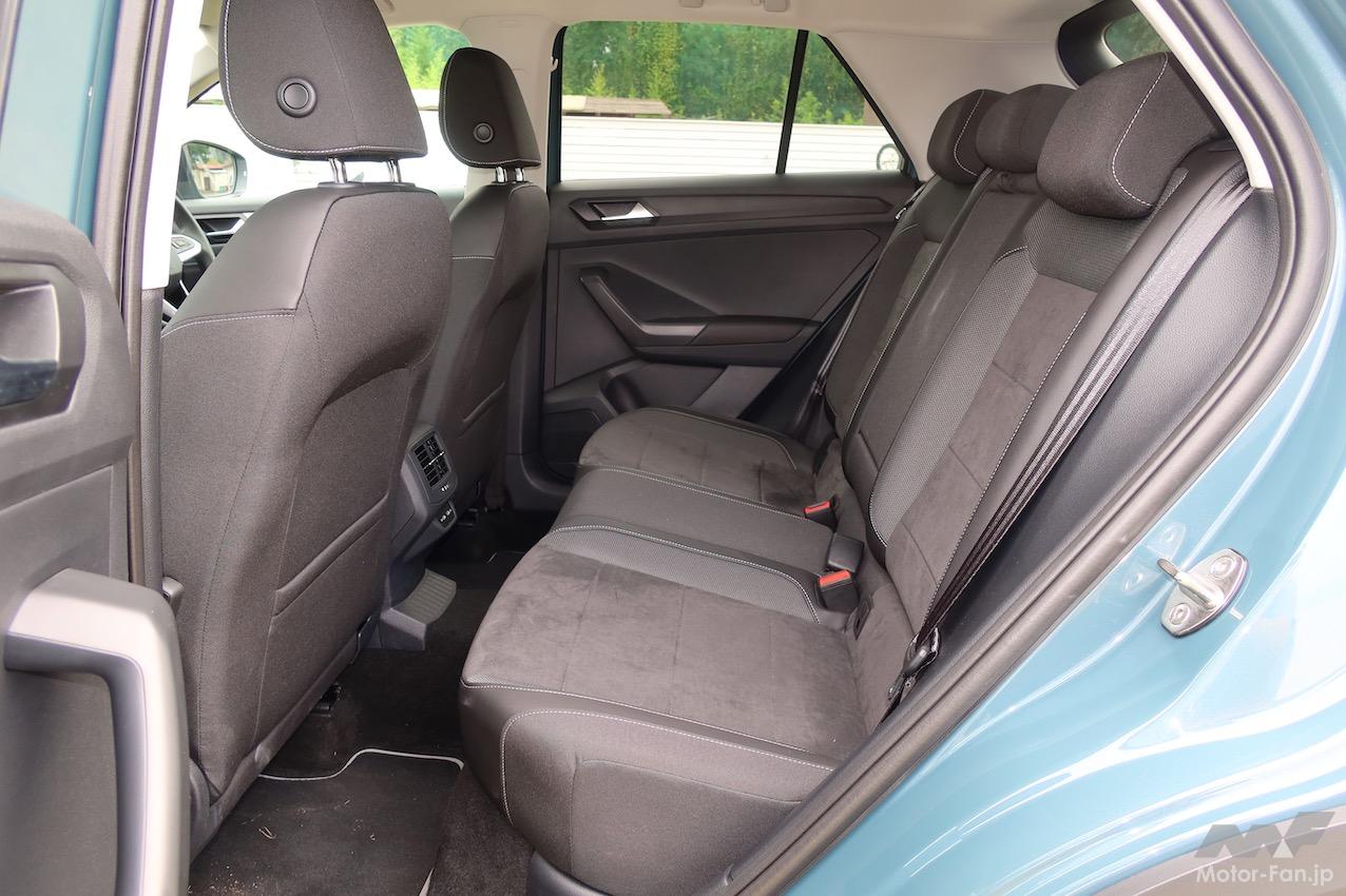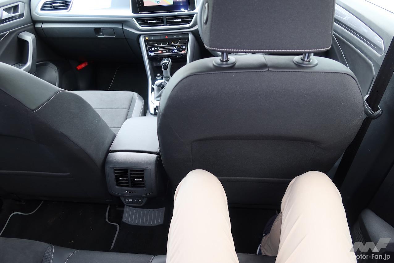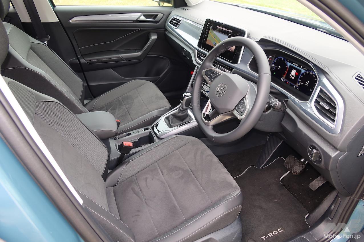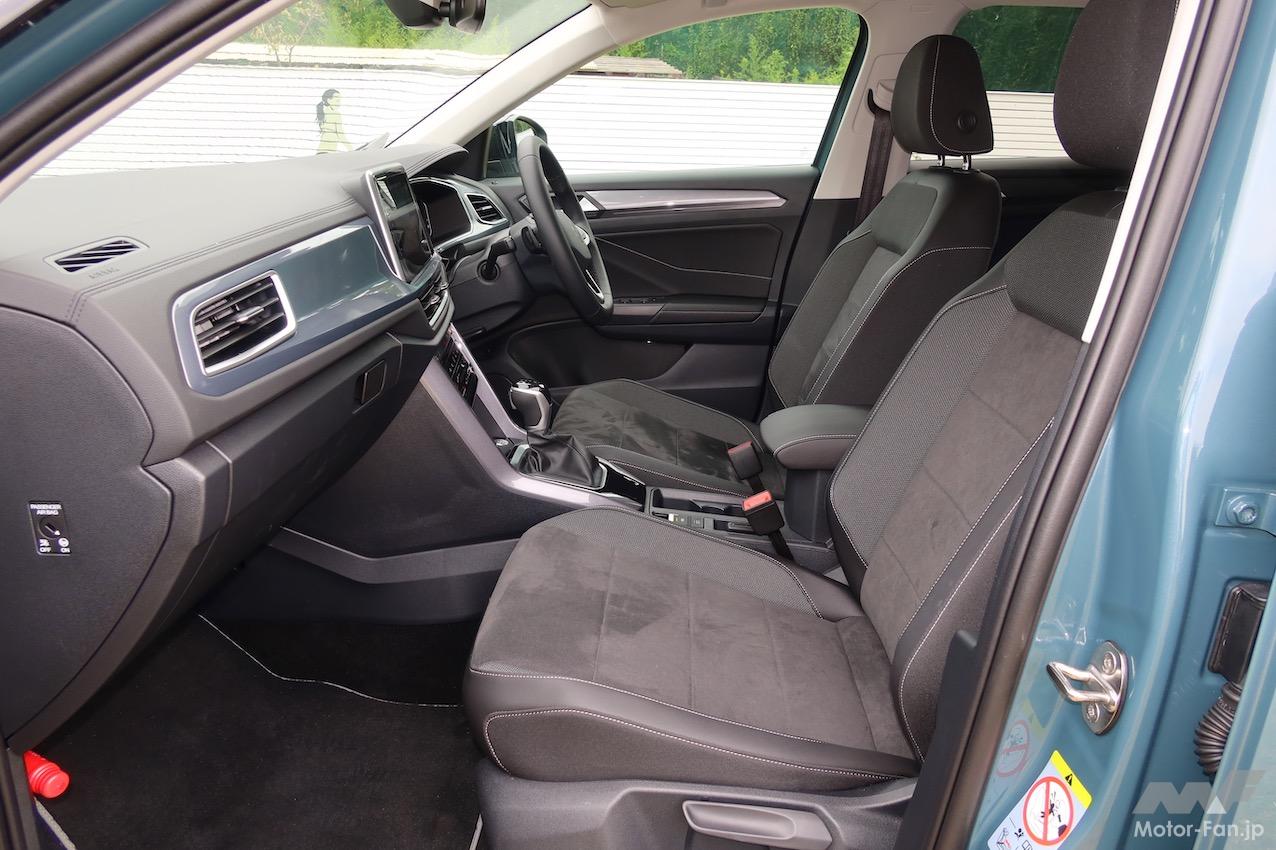T-Crossの全長×全高×全幅は4115×1760×1580mm(TSI Style)で、ホイールベースは2550mm。試しにホンダ・ヴェゼルを引き合いに出してみると、全長×全高×全幅は4330×1790×1590mm(e:HEV Z)、ホイールベースは2610mmだ。実は、国産BセグメントのSUVと同等のサイズ(全長の短さは魅力)なのがT-Rocなのである。久々にT-Rocを間近に見たが(マイナーチェンジ版は初見)、ボリュームからくる威圧感は皆無。ただし、存在感はあると感じた。