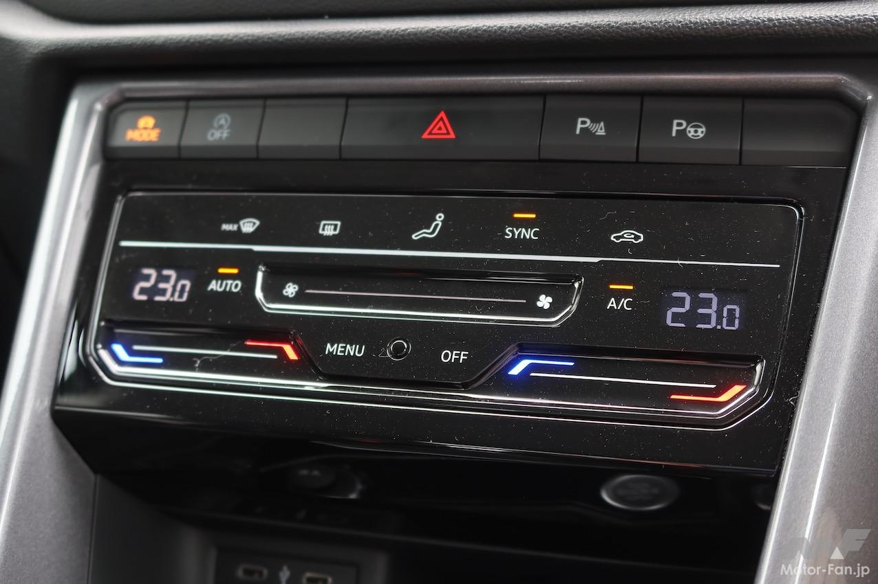 有り体にいうと、T-Rocの操作系は最新のゴルフや商品改良後のポロと同じスタイルになったことになる。ステアリングホイールのデザインも同様だ。スマホのワイヤレスチャージングが全車標準装備なのはうれしいポイントだ(シフトセレクターの前方に置き場所あり)。