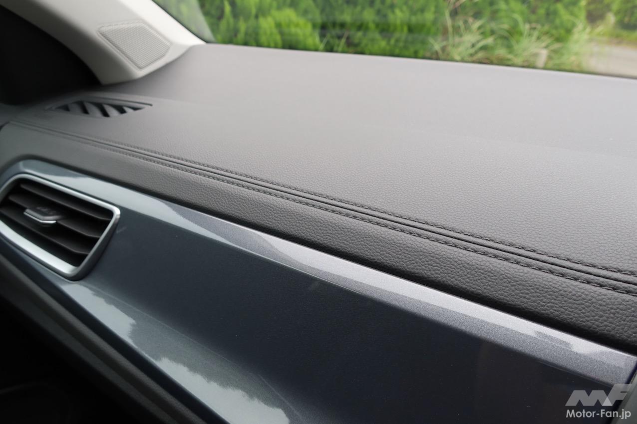 進化ポイントのふたつめであるインテリアの大幅改良は、今回のマイナーチェンジのハイライトだ。変更点はいくつもあるが、ダッシュボードの素材がハードプラスチックから本革調のソフトな素材になったのが大きい。先代の最大の弱点は、ダッシュボードのハードプラスチックだった(と、個人的には思う)。運転中、常に目に入る部位だけに、チープな見た目が気分を滅入らせた。先代に比べると、マイナーチェンジ後のダッシュボードは格段に質が高い。気分が上がるというほどではないが、少なくとも、気が滅入ることはない。マイナスからプラスへの印象の変化をもたらすので、効果の大きな変更だ。