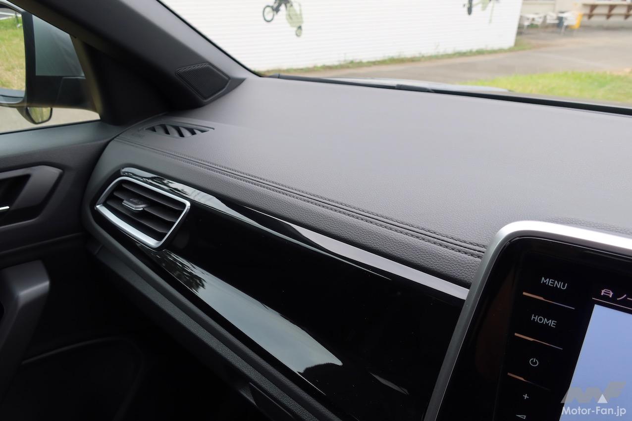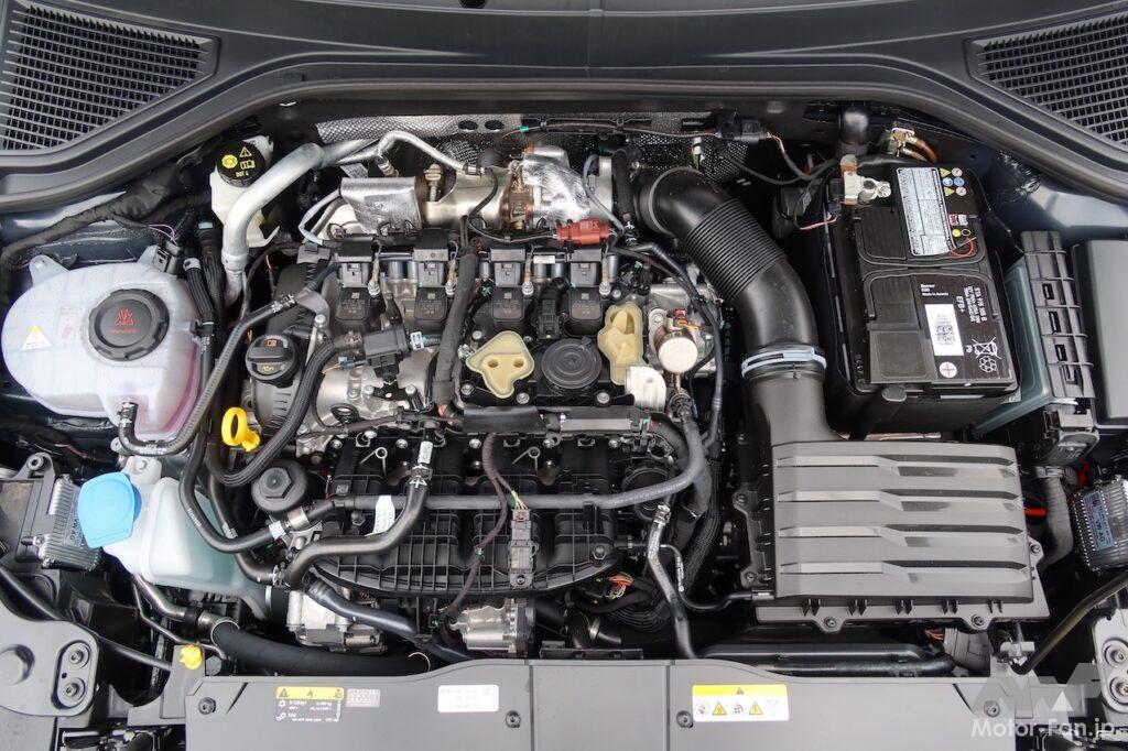 エンジンは2.0L直列4気筒直噴ターボ(EA888)を搭載。最高出力は300ps(221kW)/5300-6500rpm、最大トルクは400Nm/2000-5200rpmを発生する。VWのSUVでは兄貴分のティグアンRが同じエンジンを搭載するが、こちらは最高出力320ps(235kW)/5350-6500rpm、最大トルク420Nm/2100-5350rpmを発生。ティグアンRのほうが大きな出力とトルクを発生するのは、約200kg重い車両重量(1750kg)に対応するためだ。発進デバイスに湿式多板クラッチを用いる7速DSG(DCT)を組み合わせる点もティグアンRと同様だが、ティグアンRはトレーラーなどの牽引を想定しているため高トルク型となる。