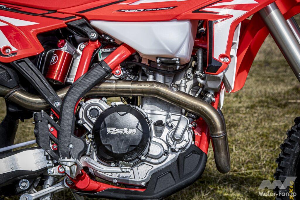 過去のレポートでもお伝えしましたが、BETAのエンデューロバイク(ED)は2ストローク仕様のラインナップがとても多い印象です。ですが、同社が初めに作ったのは4ストローク車のようで歴史も長いみたいです。なので今回紹介する4ストの「RR4T 430」こそ真骨頂と言っても過言ではありません!