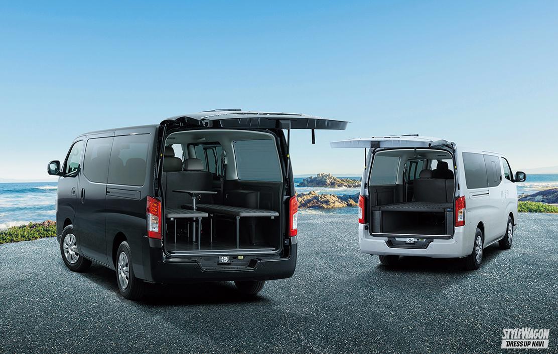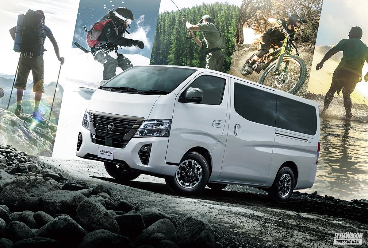 キャラバン最大の特徴である“積んで運ぶ”魅力を、趣味ユースの観点から強化した新車ベースのコンプリートカーが、通常グレードとは別に全国の日産ディーラーで購入できる。それが「プロスタイル」「マルチベッド」「トランスポーター」の3つ。後述する『オーテック』を展開する関連会社、日産モータースポーツ&カスタマイズが、E26の標準グレードの1つである「プレミアムGX」や「グランドプレミアムGX」をベースに特別に架装したディーラーで買えるスペシャリティーカーがそれだ。