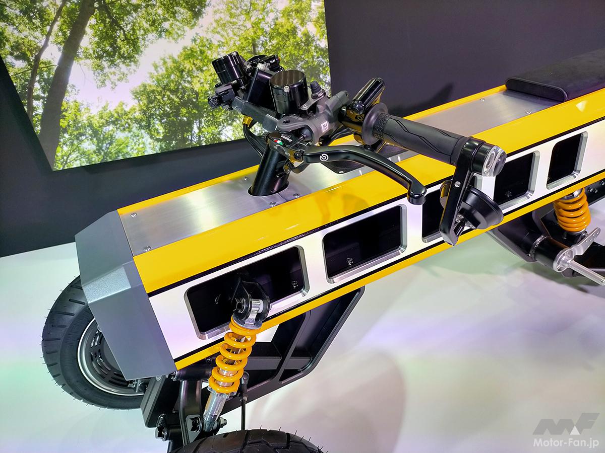 乗車する楽しさや、所有する喜びを叶えつつ、自分好みのアレンジやカスタムにも応えるホースライド型の電動モビリティ。各部にバイク用パーツを駆使するなど、二輪メーカーであるヤマハならではの工夫が随所にうかがえる。