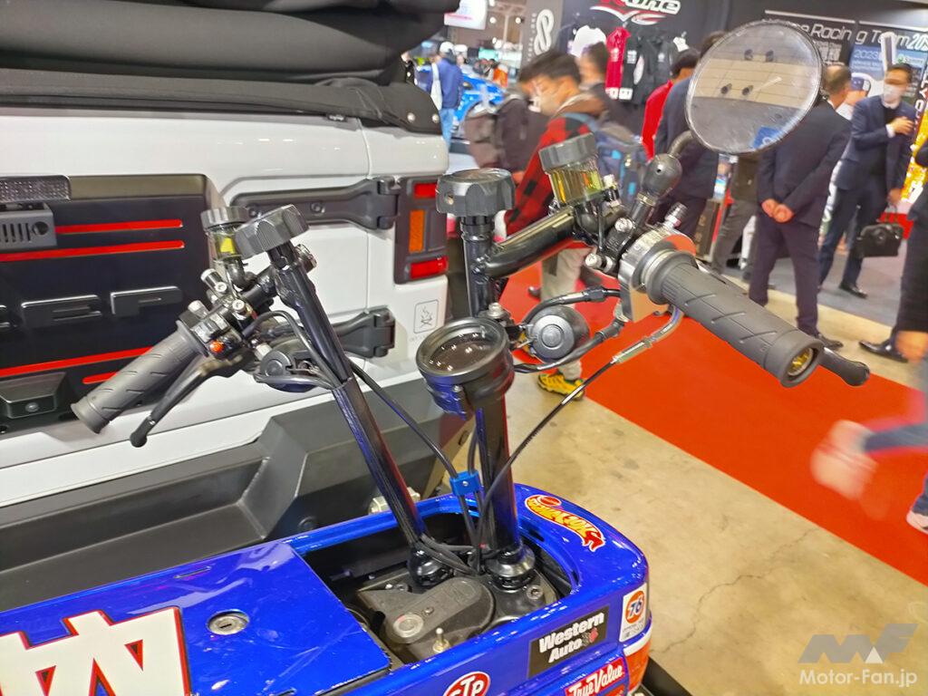 このモトコンポ改は大阪モーターサイクルショー2023のカスタムコンテストで1位を獲得した、知る人ぞ知るマシン。モトコンポ専門ショップ「SUBARM(サブアーム)」が手掛けたこのカスタムは、大阪府門真市にあるミニカーショップ「太田商店」のデモ車として製作されたもの。