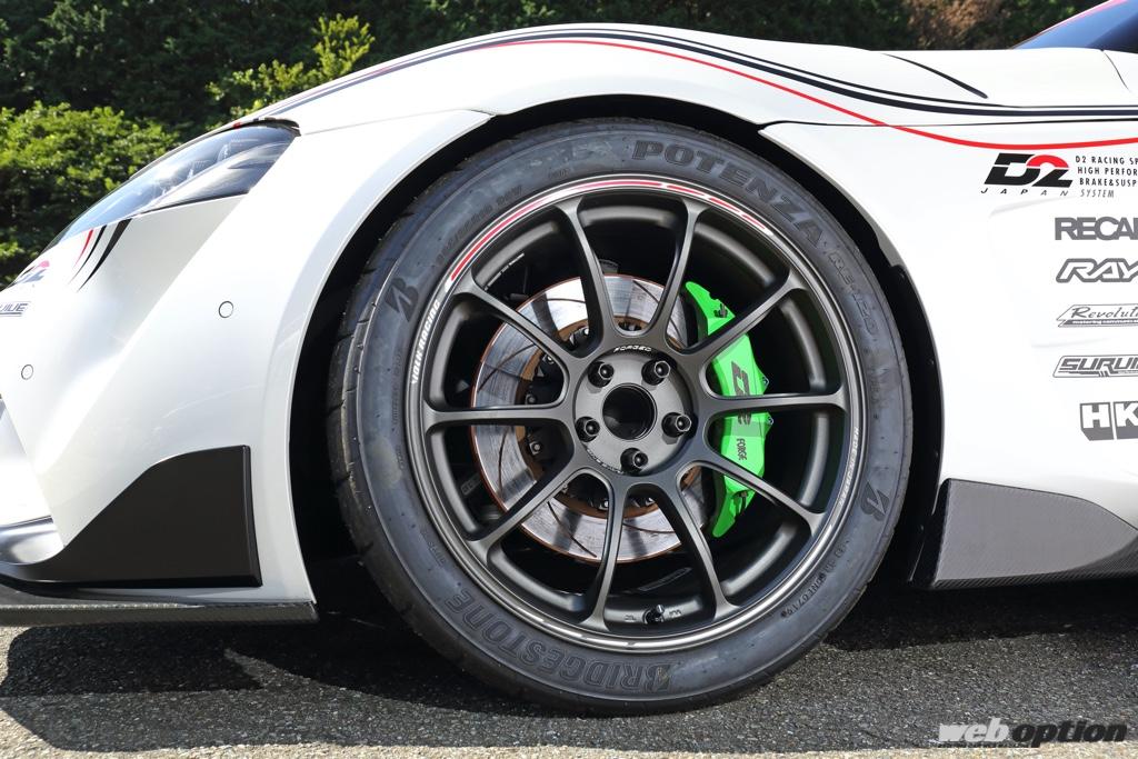 電子サイドブレーキのEPBを採用するGRスープラはリヤブレーキ交換が難しいが、D2ジャパンでは対応キャリパーを開発。前後の同時交換を可能としているのだ。これによりサーキットでの連続走行にも耐えられる、安心感のあるブレーキ性能を手に入れた。