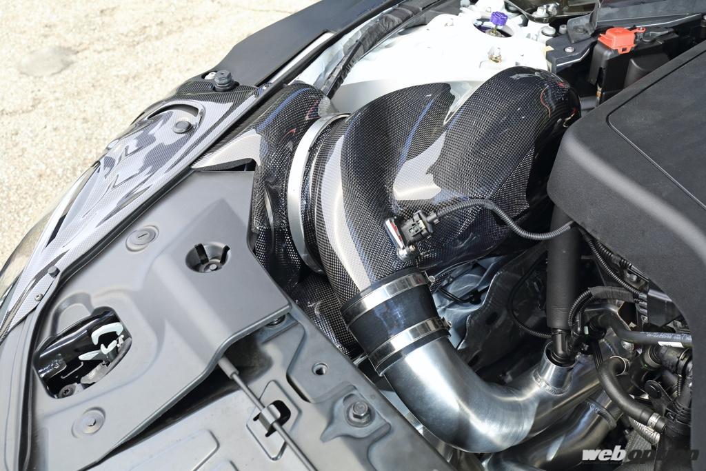 冒頭でも触れた通り、パワー系は吸排気に手を入れたくらいのライトな内容となるが、ECU-TEKで現車合わせセッティングすることで、最高出力350ps&最大トルク55kgmを実測で獲得。車体の軽さも手伝って、RZを追い回せるほどの速さを手に入れている。