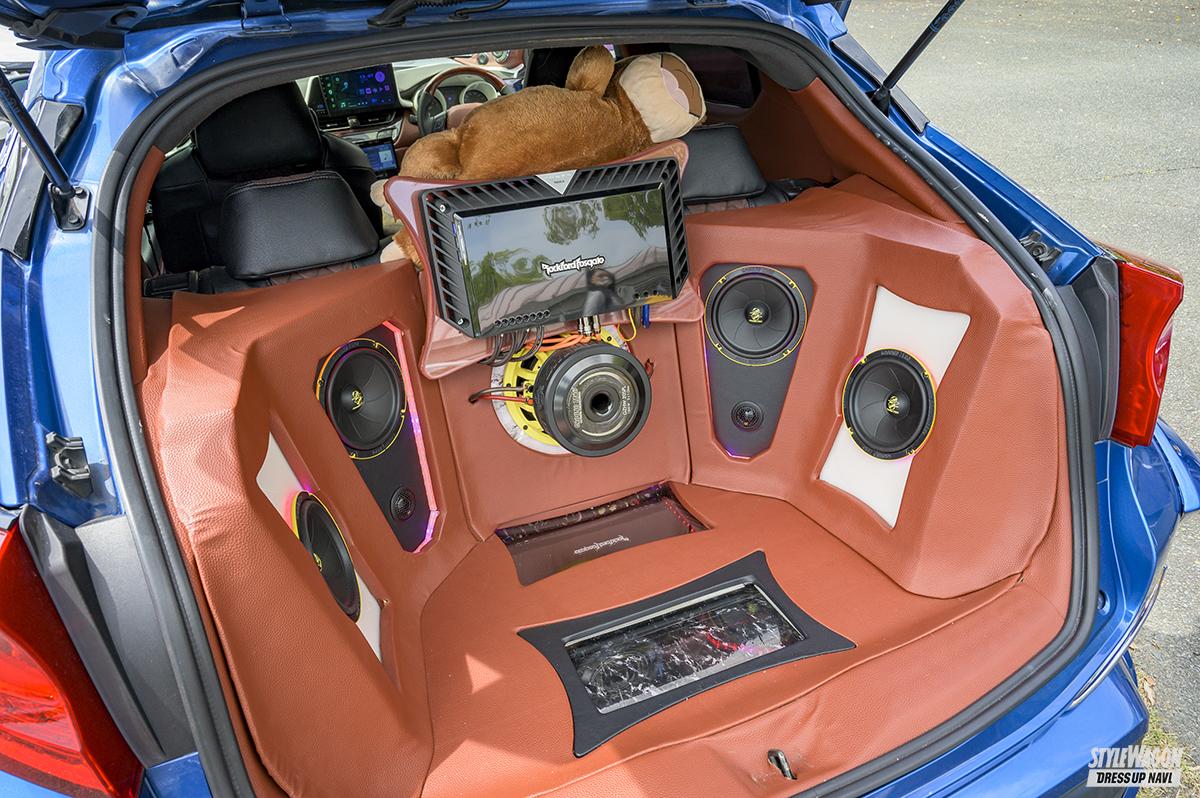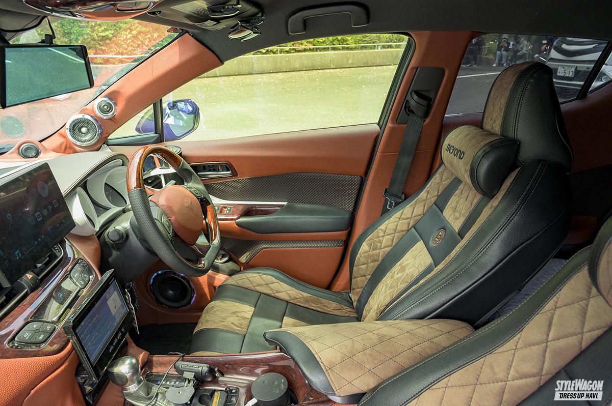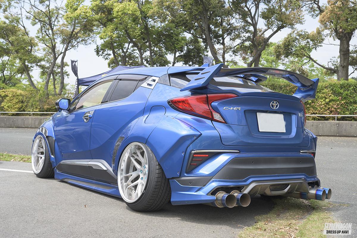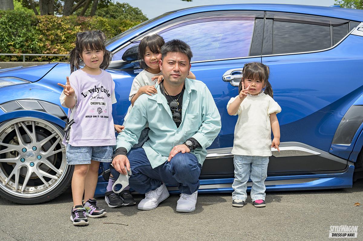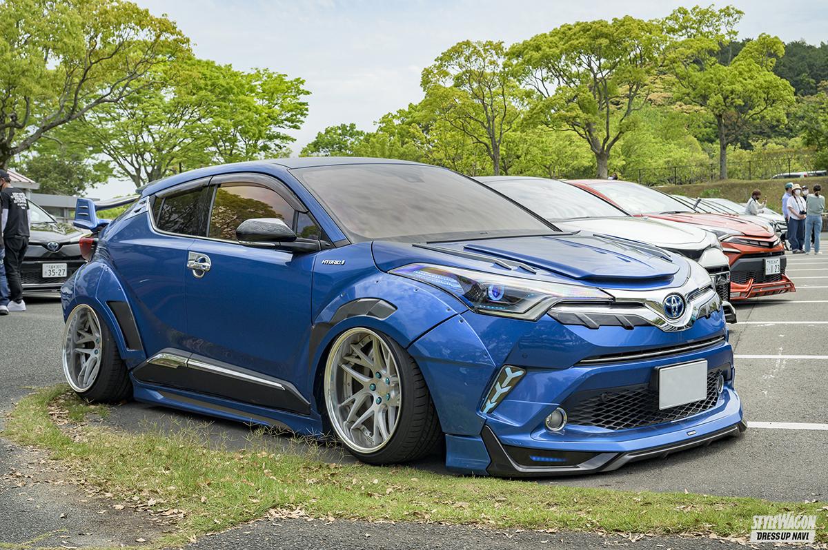 イデアルのエアサスで着地スレスレの状態までロワードされた車高と、前11J後11.5JというディープなサイズのワークCVXとの組み合わせが目を惹くRYOさんのC-HR。エアロはモデリスタとビヨンドとのミックス仕様。内装の張り替えやラゲッジルームのカスタムオーディオなど、カスタマイズはすべてDIYによるもので、C-HRまつりの数日前に行われたドレスアップイベントではコンパクトクラス表彰において見事、2位を獲得。果たしてこの進化、どこまで続く?