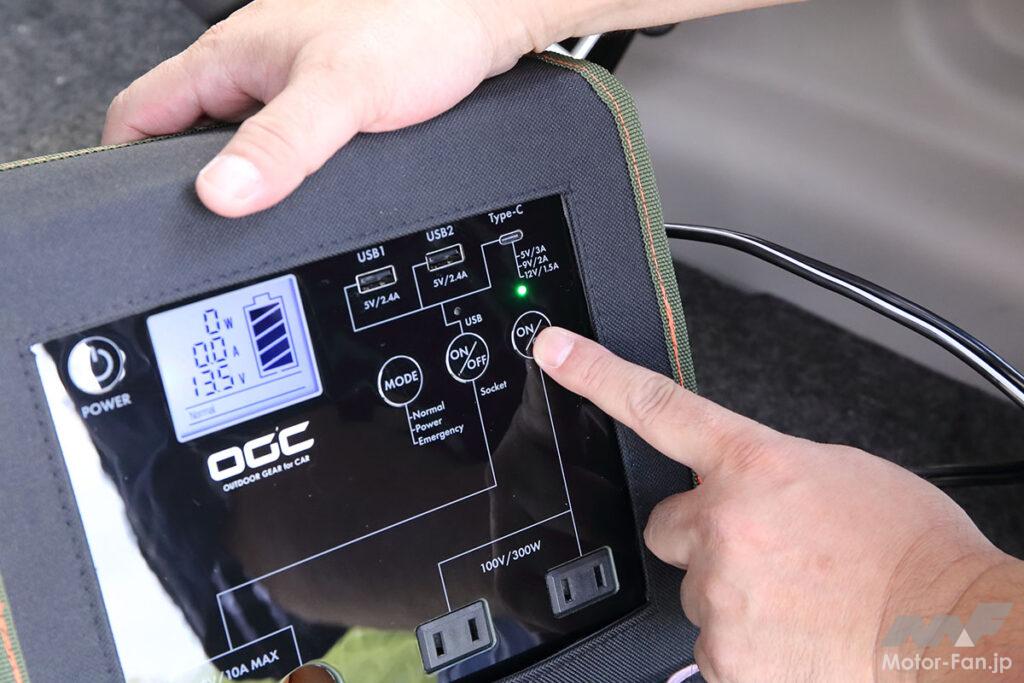 得られる能力としては、AC100Vなら最大300Wで、瞬間最大は600Wまで許容可能。DC12Vなら120Wで、3口揃えられるUSBは最大24Wの出力まで可能。大容量・急速充電にも対応する。鉛バッテリーとはいえ、そこそこの能力と言っていいだろう。