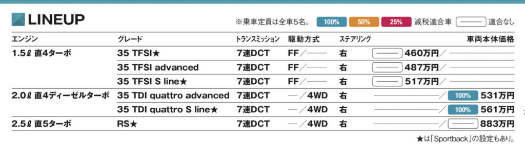 月間登録台数 NO DATA 現行型発表 20年7月(「RS」追加 20年10月) WLTCモード燃費 15.5km/l※「35 TFSI」系