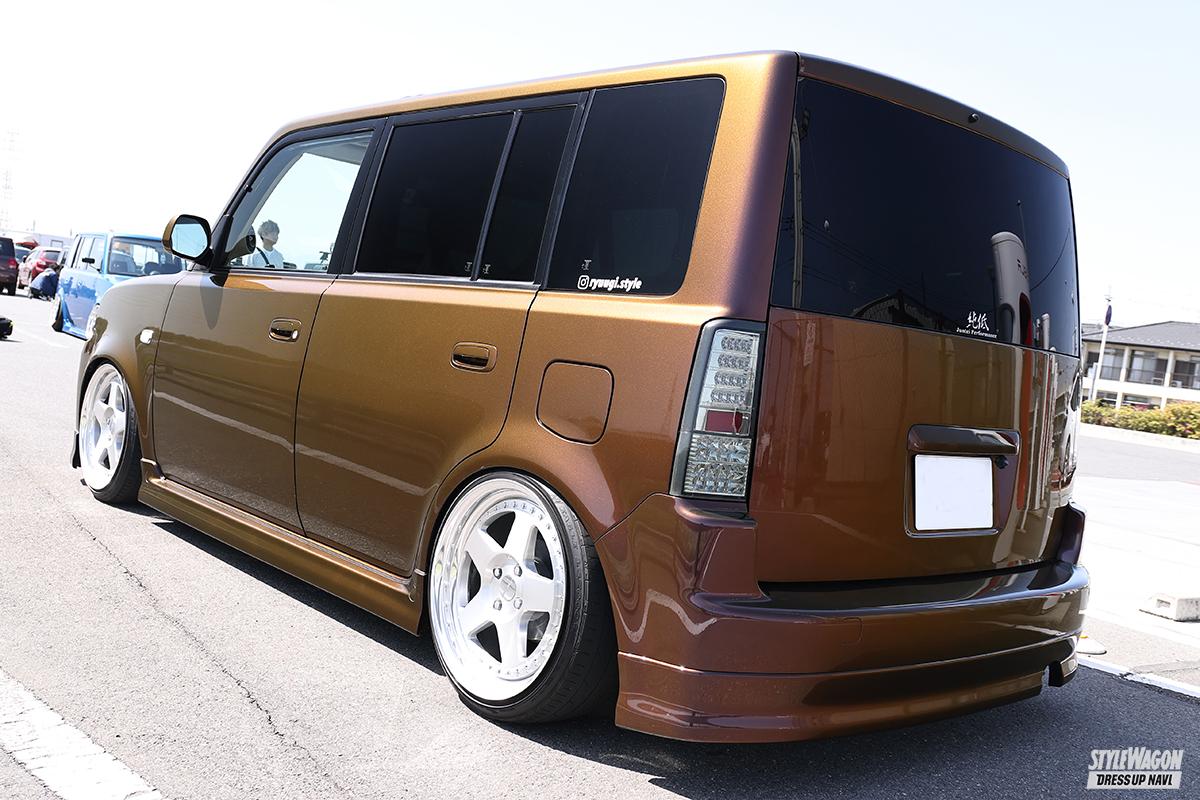 前車はタンクで、次車は「ホイールベースで車両を考えた」という菊りんさん。bBも気になる存在だったが、「サンルーフが欲しかった」ことからNCPを探し、当車に出会った。カスタムはスタンス路線。シンプルだけどやることはやっている、のがポイント。フロントバンパーやリアワイパー部はスムージングしたり、車内もスエード生地に張り替えたり。荷室のオーディオはひと目で違うのがわかる部分だが、その他はよ〜く見ると「イロイロ違う!」と気づく1台なのである。