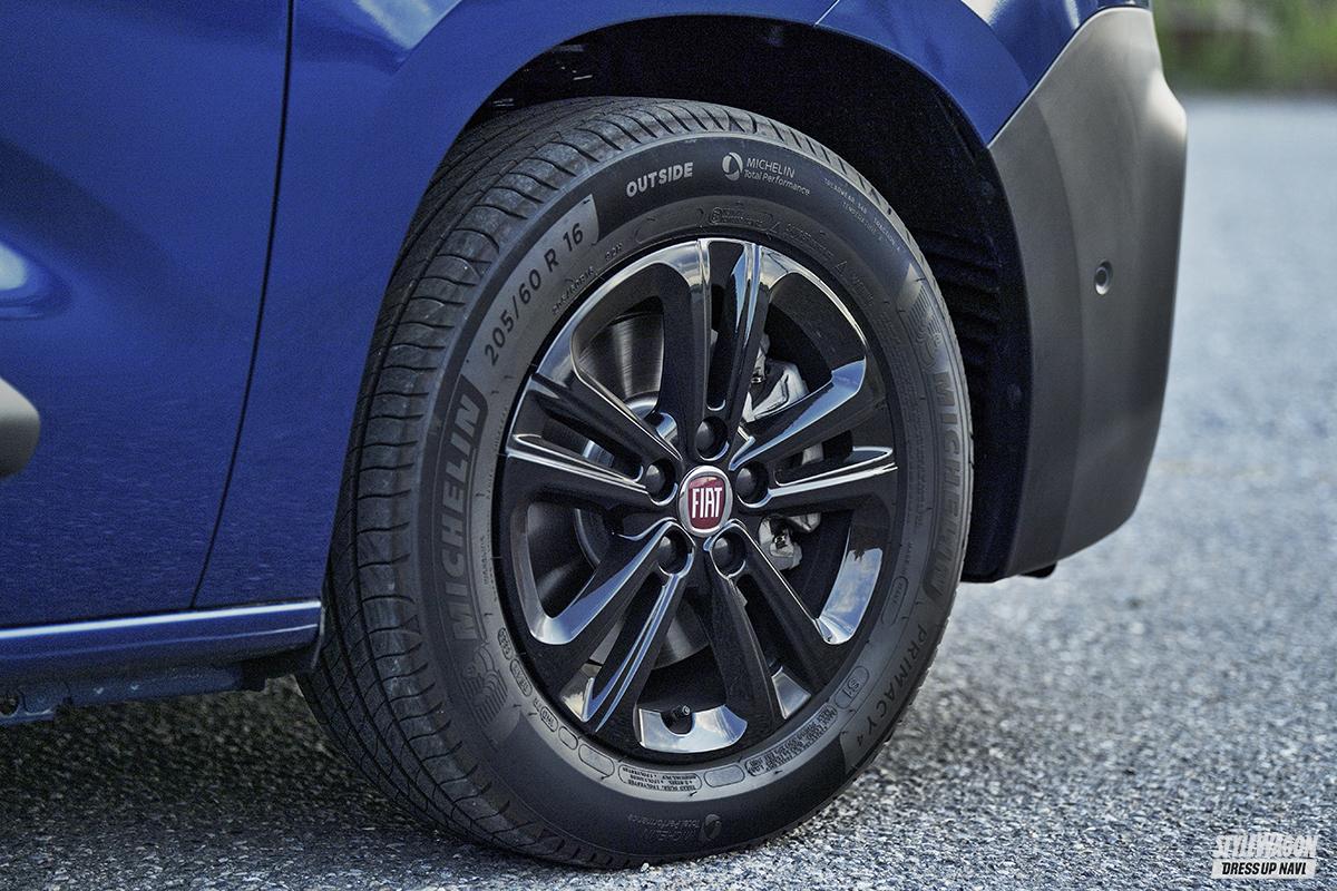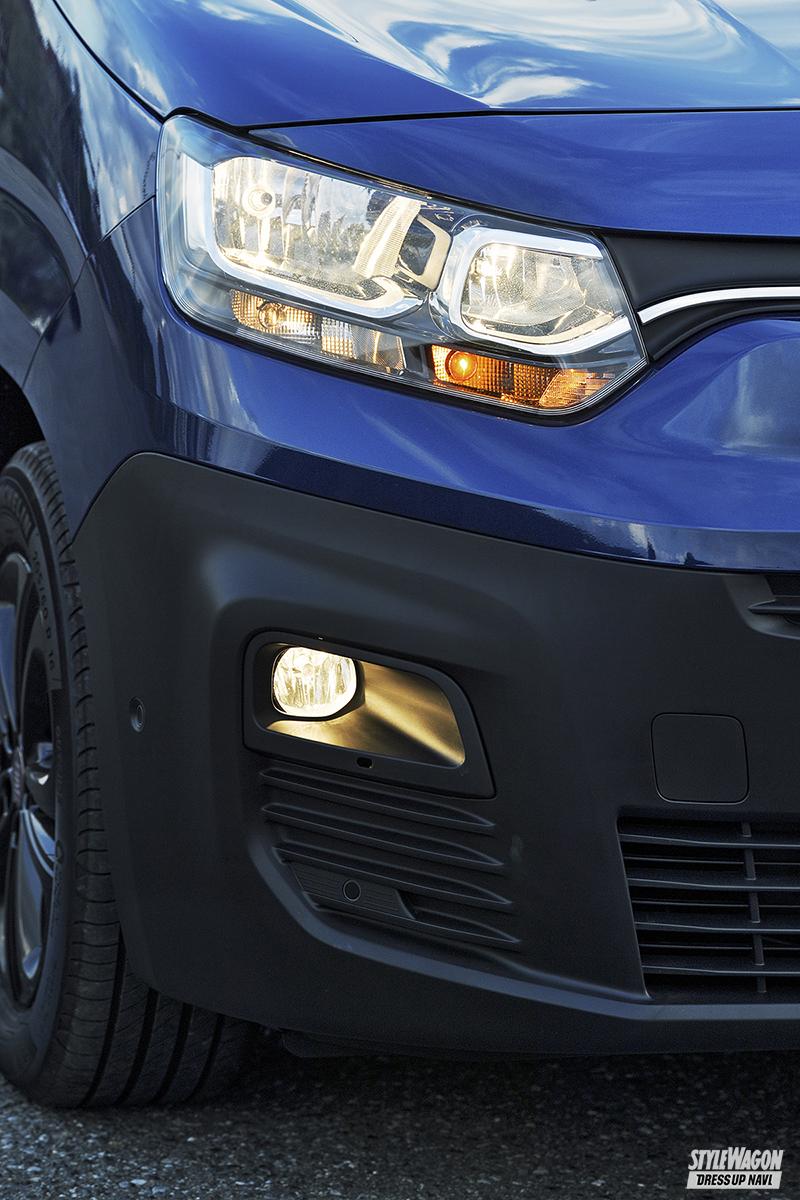 ドブロはというと、フィアットのロゴが目立つグリルレスデザインで、未塗装の樹脂バンパーを装着。どちらかというと商用車チックな顔まわりと言えそうだが、実は装備類もリフターやベルランゴに比べて厳選されている。