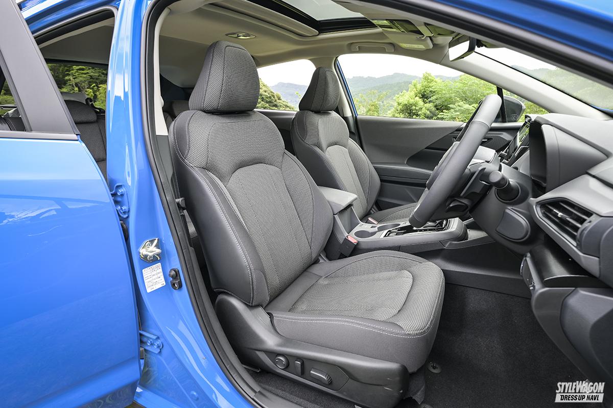 今回、サーキットで試乗したのは、e-BOXER車だが、パワートレインの改良で、エンジンのモーターアシストの制御が磨かれ、加減速だけでなく、走行音もより滑らかに。ボディが強化されたことで、4輪の接地感を高め、クルマの挙動も掴みやすい。だから、先代以上に、スポーティな走りも楽しめる。これはFF車とAWD車に共通する魅力となる。また新型を縁の下で支えるのが、新採用の前席。乗降性に優れる形状なのに、身体をしっかりと支えてくれる。これならば、長距離でも疲れにくい。
