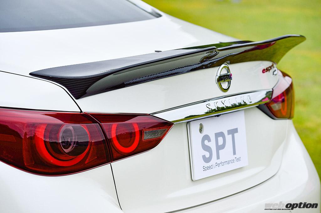 リヤにはエスプリオリジナルのトランクスポイラー(6万3800円)を装備。最高速を落とすことなく、超高速域での安定性確保を狙った形状だ。なお、エスプリではサーキット向けにダウンフォースを重視した、GTウイング042もラインナップしている。
